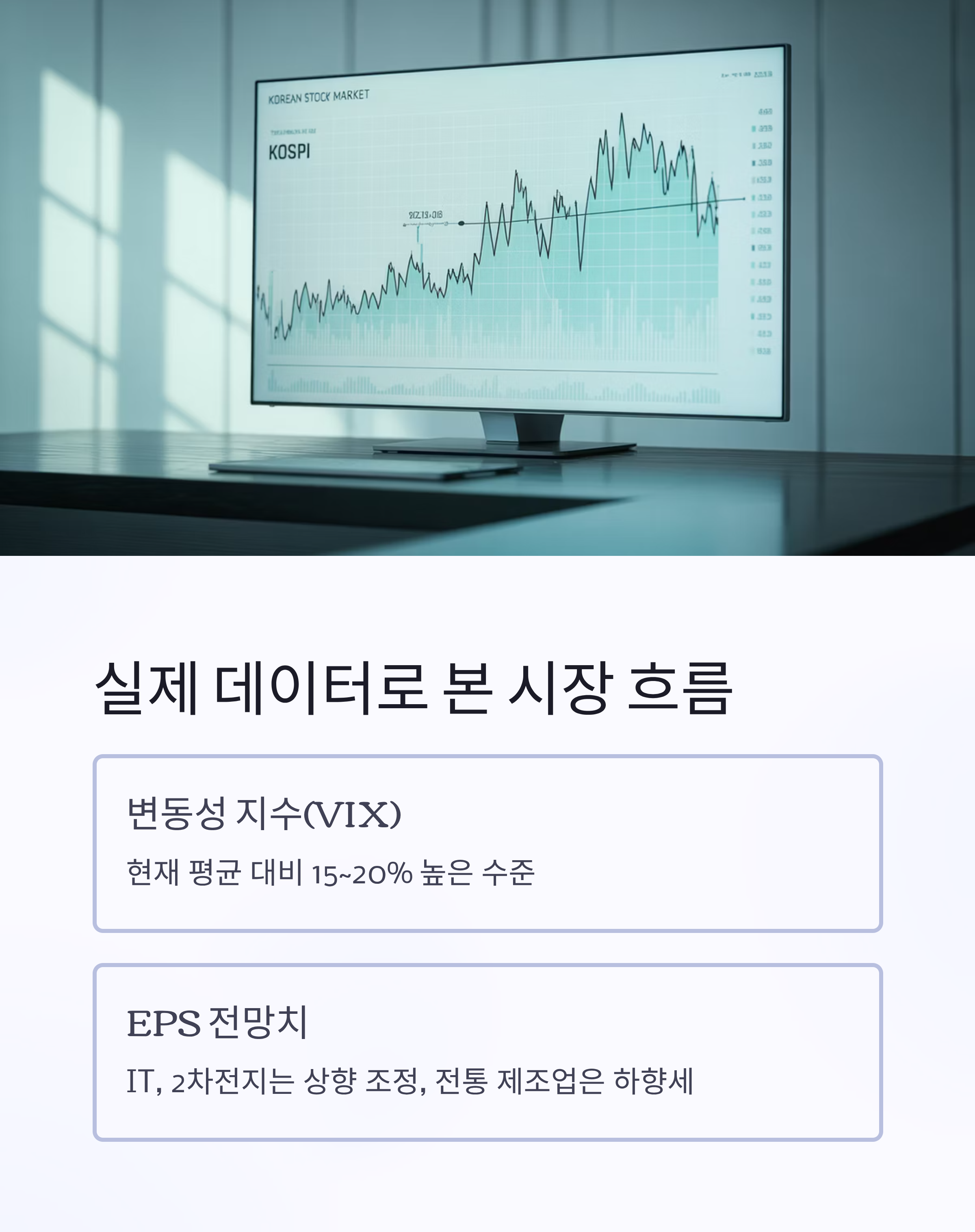 - EPS(주당순이익) 전망치: 일부 업종(IT, 2차전지)은 상향 조정, 전통 제조업은 하향세