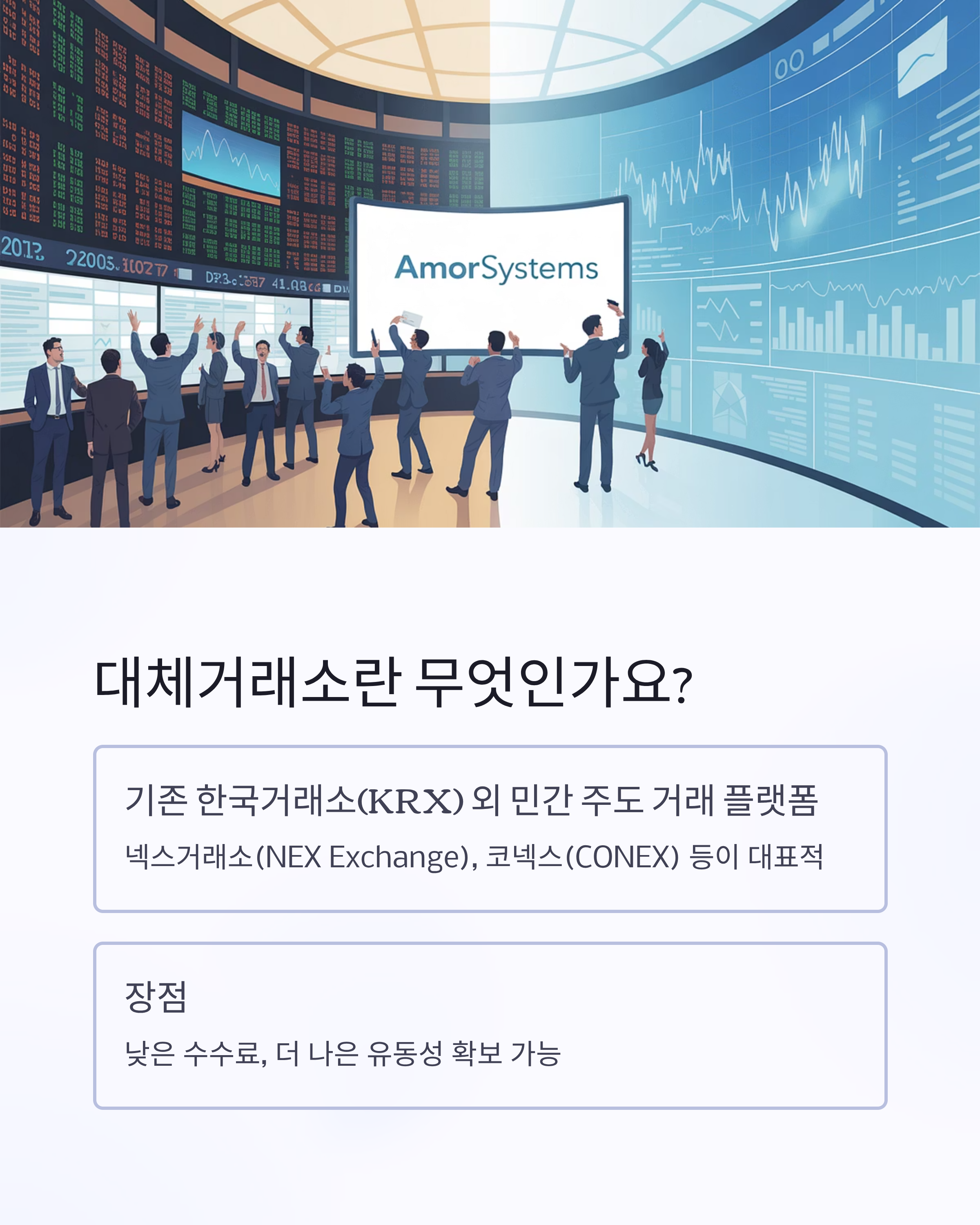 대체거래소는 기존 증권거래소 외에 주문이 체결되는 또 하나의 시장입니다.