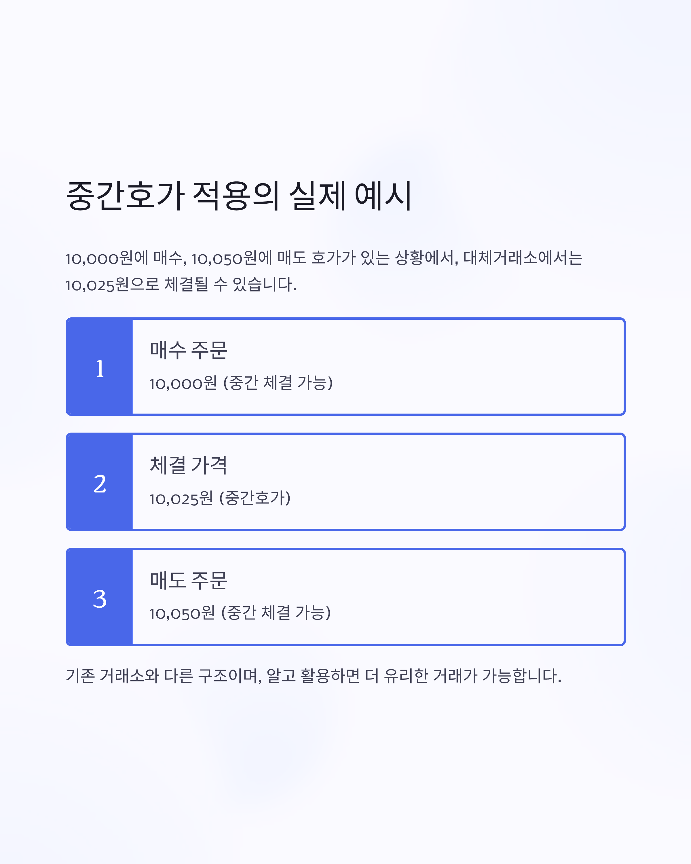 대체거래소는 이 중간호가 범위 내에서도 주문이 체결될 수 있게 설계되어