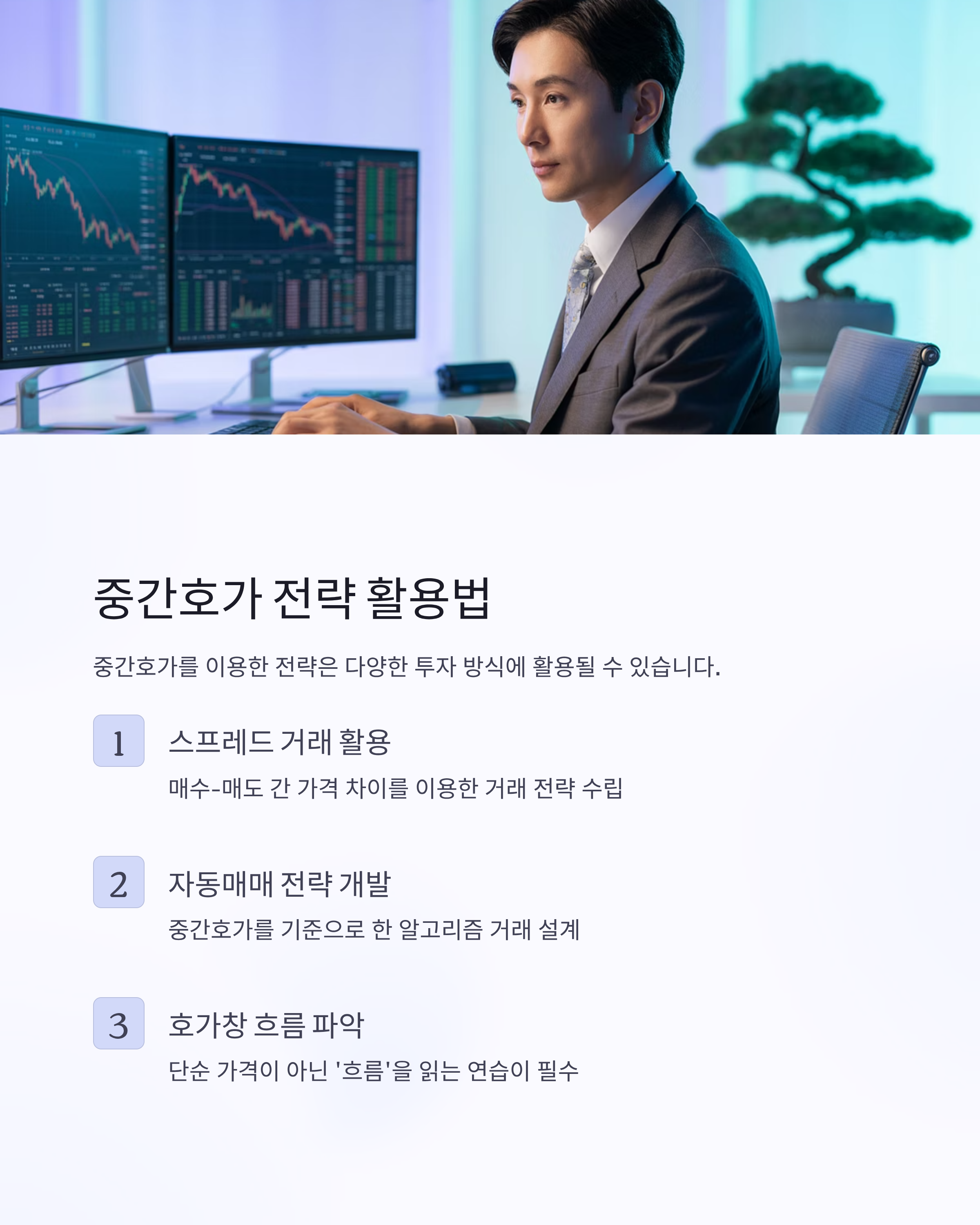 중간호가를 이용한 전략은 스프레드 거래, 자동매매 전략 등에 활용됩니다.