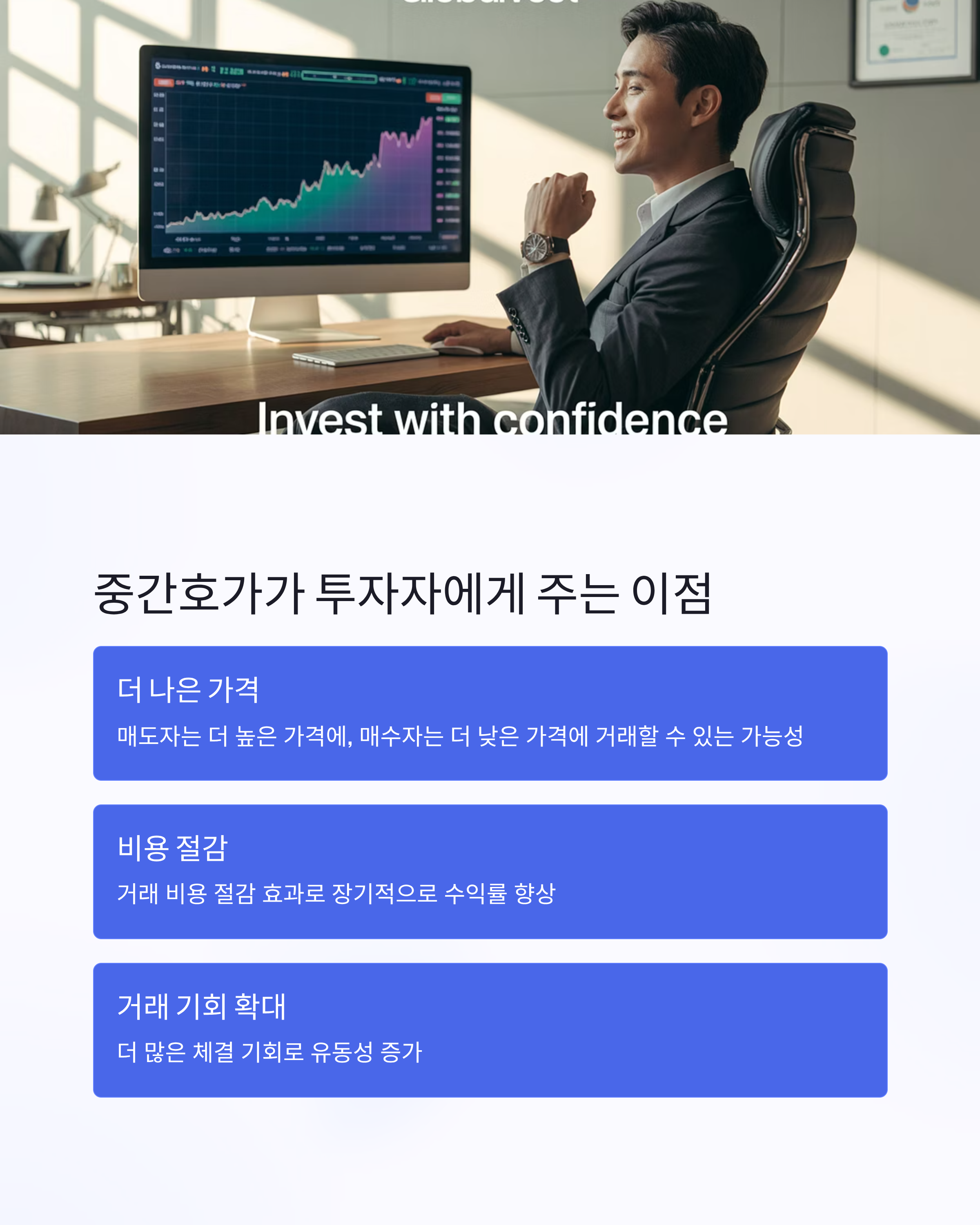 중간호가는 투자자에게 더 나은 가격으로 거래할 기회를 제공합니다.