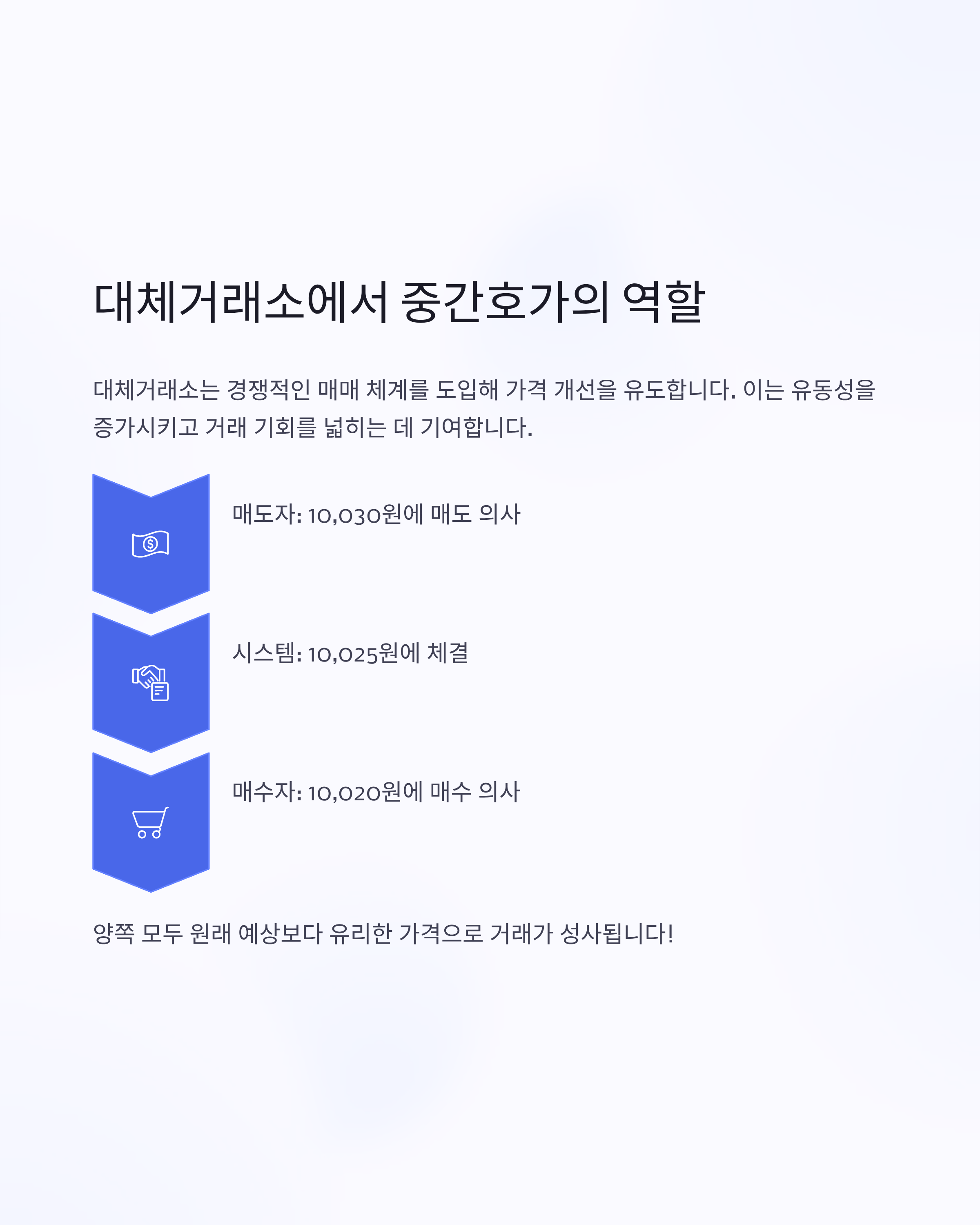 매도자는 더 높은 가격에, 매수자는 더 낮은 가격에 거래할 수 있는