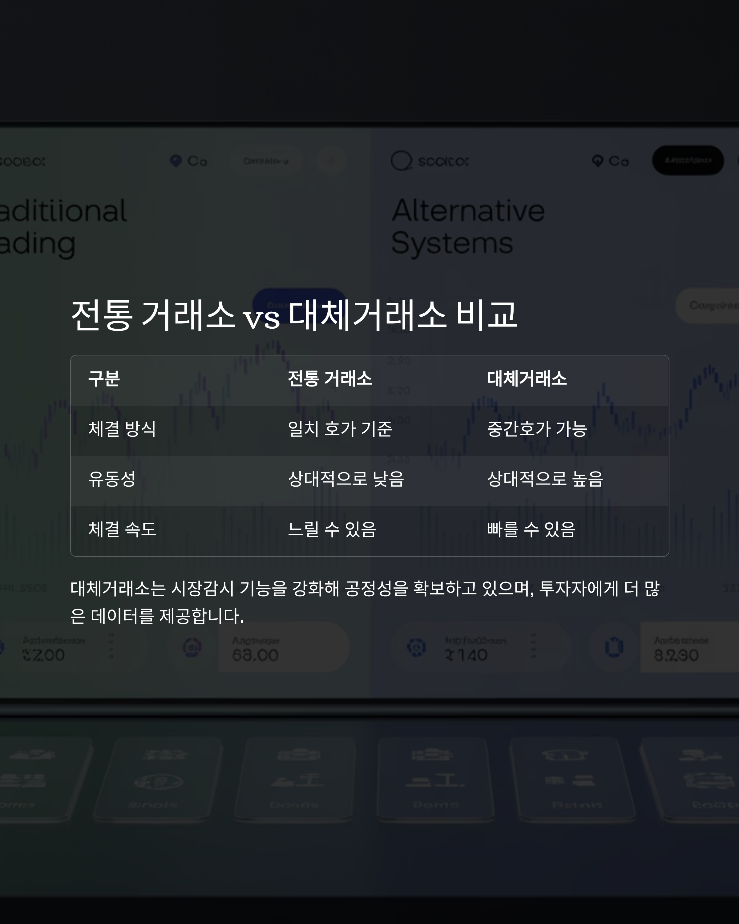 대체거래소는 경쟁적인 매매 체계를 도입해, 가격 개선을 유도합니다.