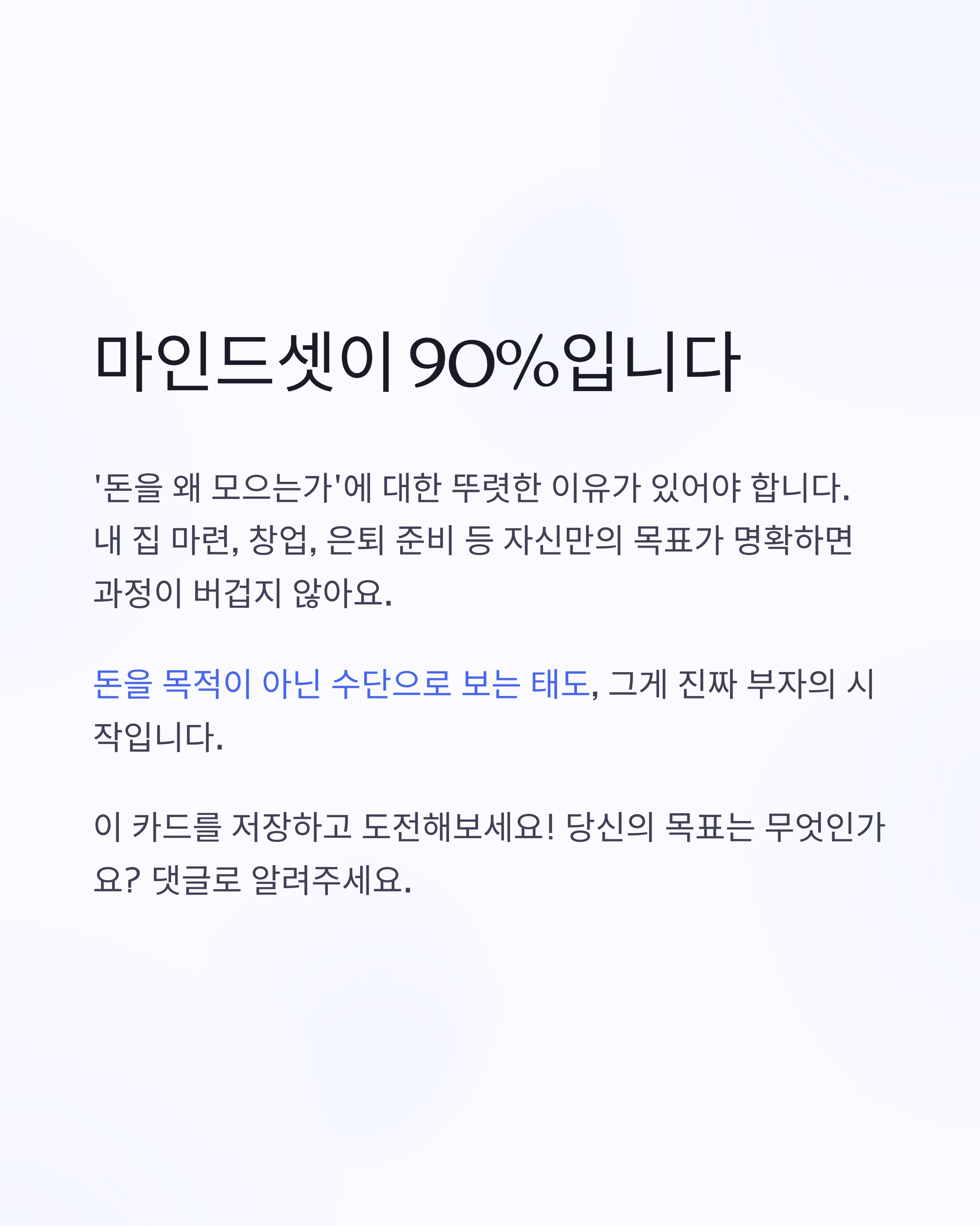 '돈을 왜 모으는가'에 대한 뚜렷한 이유가 있어야 합니다.