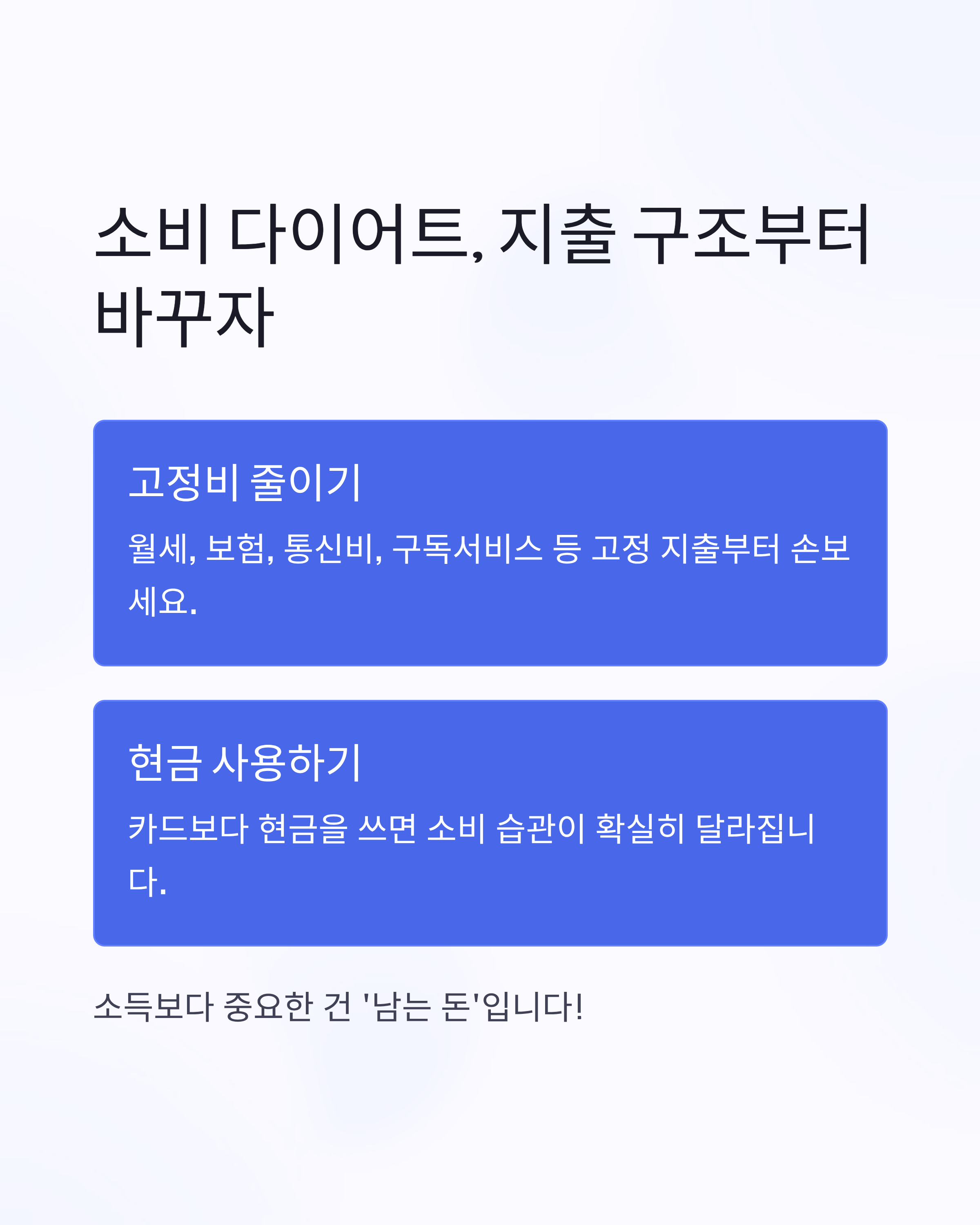 고정지출부터 손봐야 종잣돈이 생기기 시작해요.
