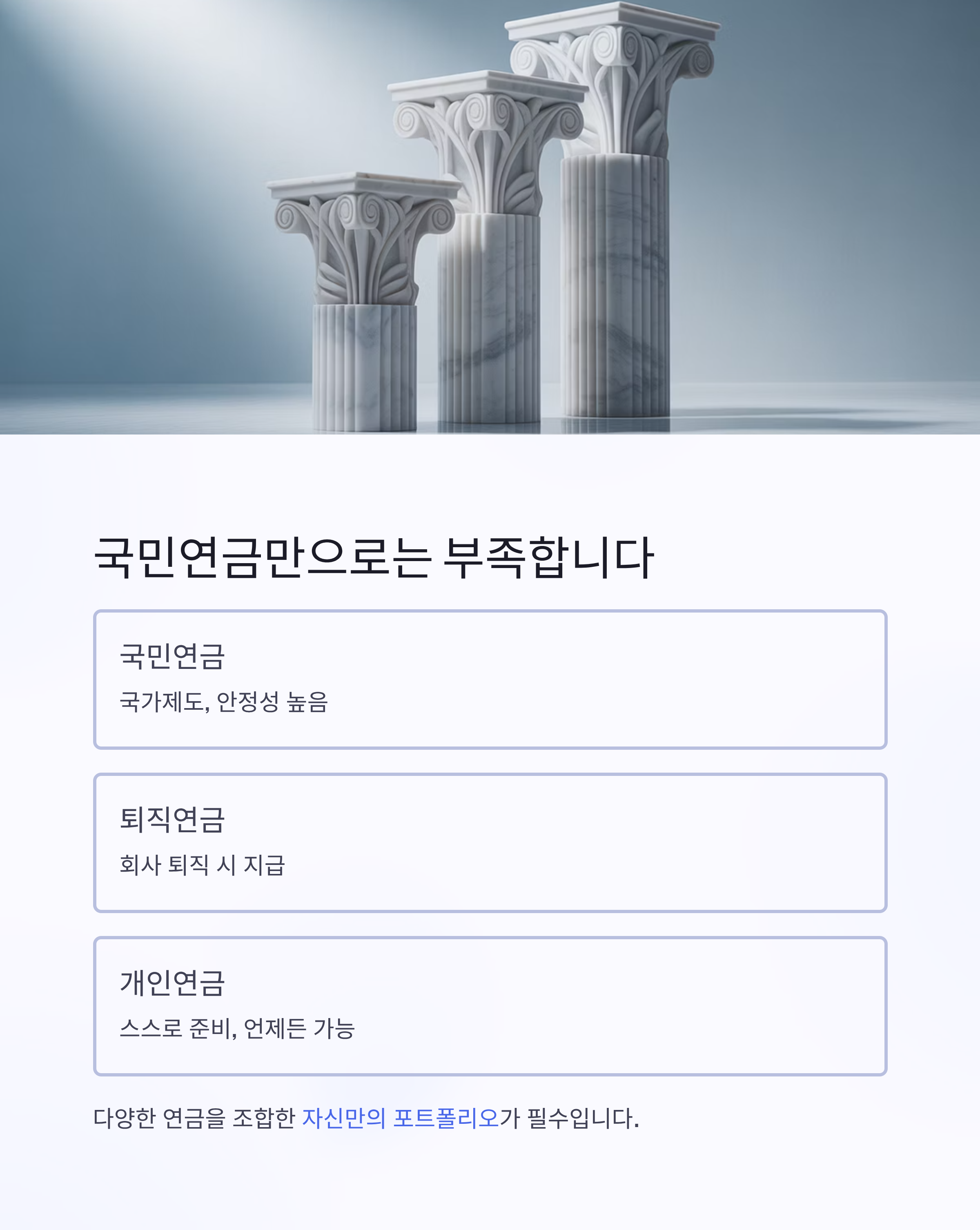 자신만의 노후 자산 포트폴리오를 갖추는 것이 필수입니다.