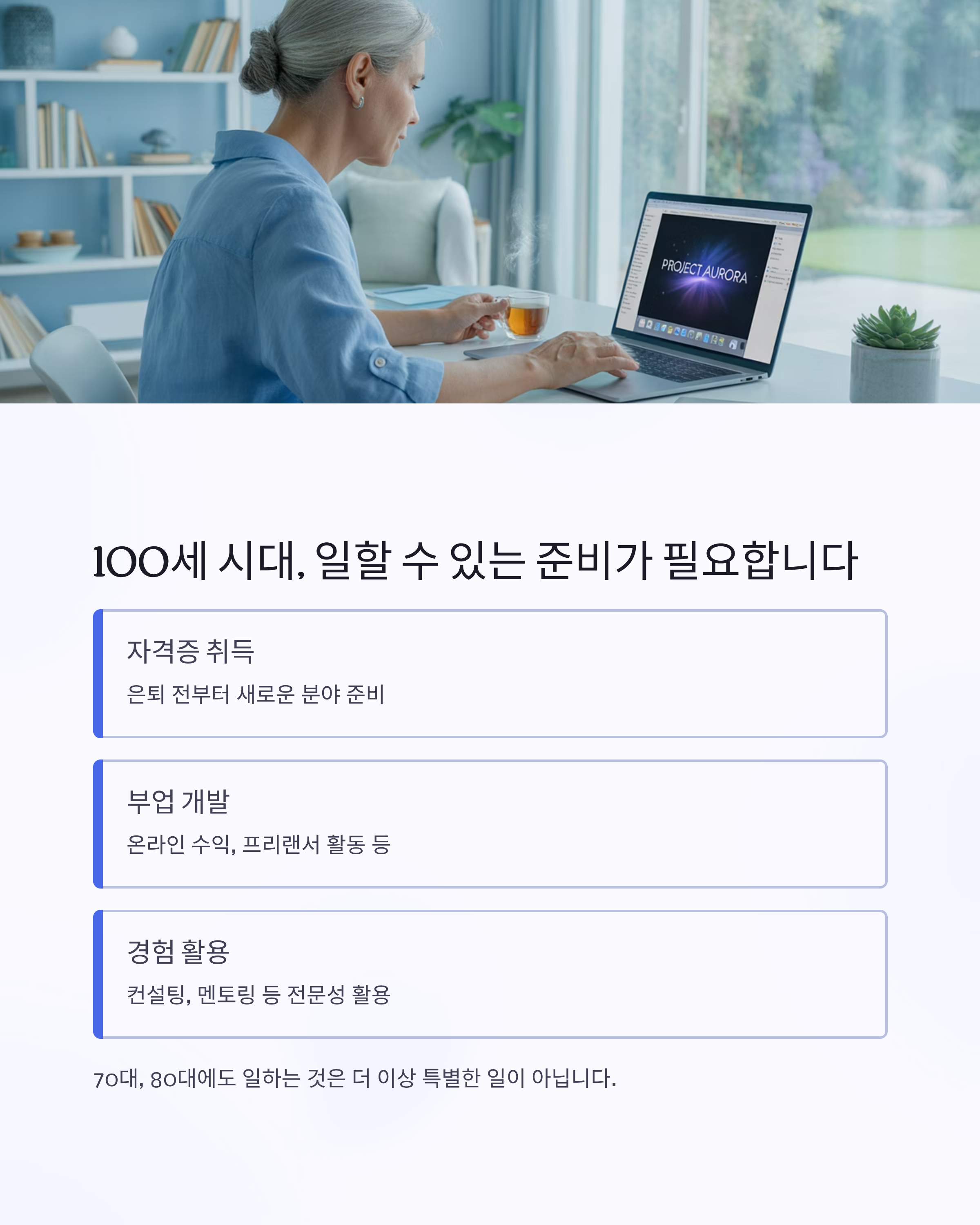 60세 이후에도 일할 수 있는 준비를 해야 합니다.
