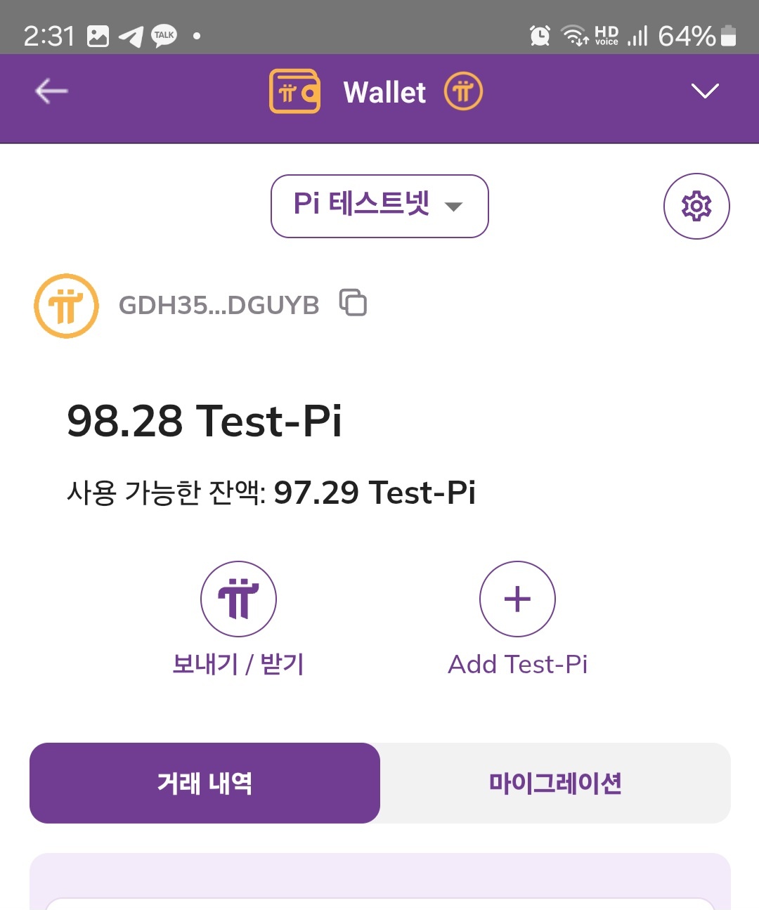 파이코인 지갑 만들기와 테스트파이 전송하기 완료 됬습니다