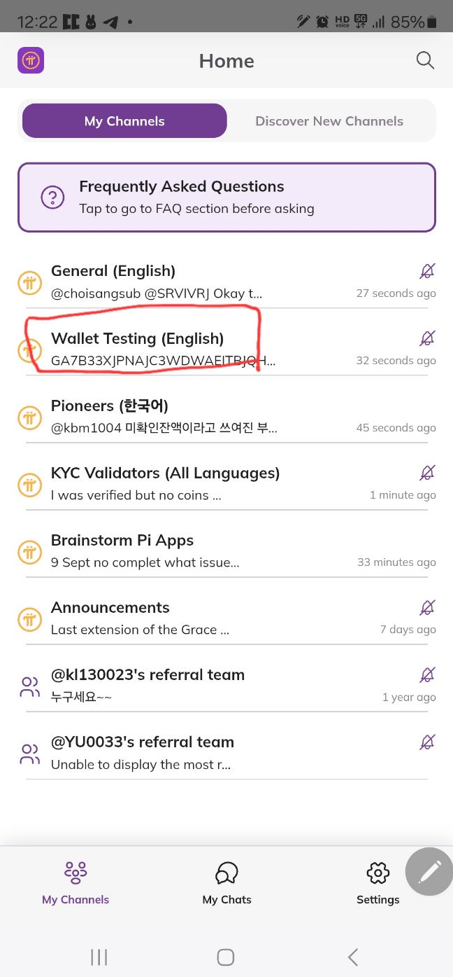 지갑 주소는 본인 테스트넷 주소를 복사 하셔도 되고 파이 번개 누르는 홈 화면 월렛 테스팅 방으로 들어 가시면 쉽게 주소를 구할수 있으며 그방은 모두 테스팅 하기 위한 주소로 아무거나 복사 하셔서