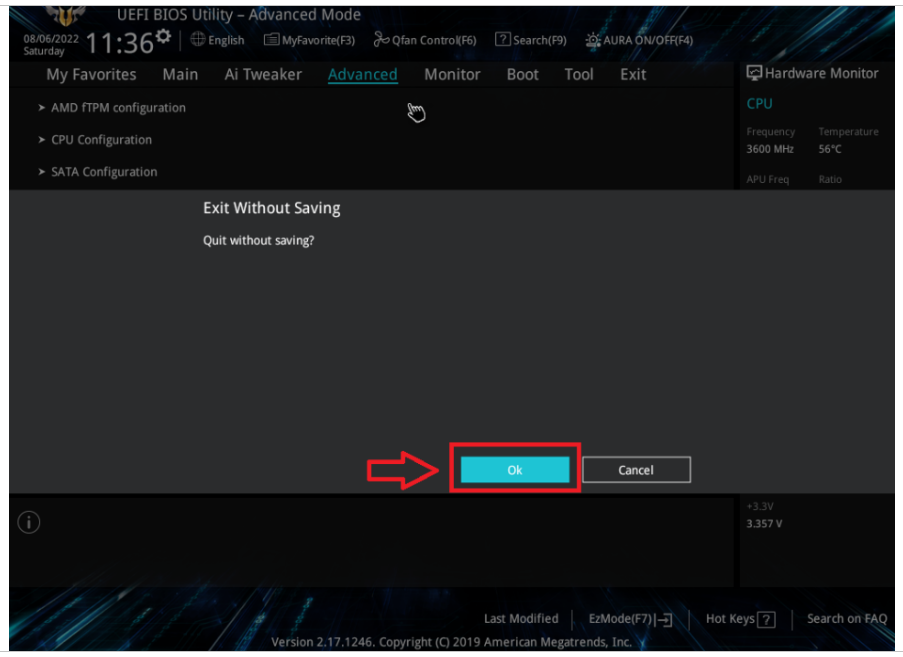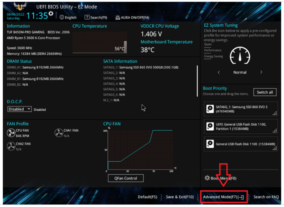 바이오스 화면이나왔다면 아래 화살표 Advanced mode 눌러 줍니다.