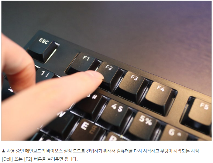 Del, F2, F10등.. 본인의 바이오스 진입키를 눌러야 됩니다.
