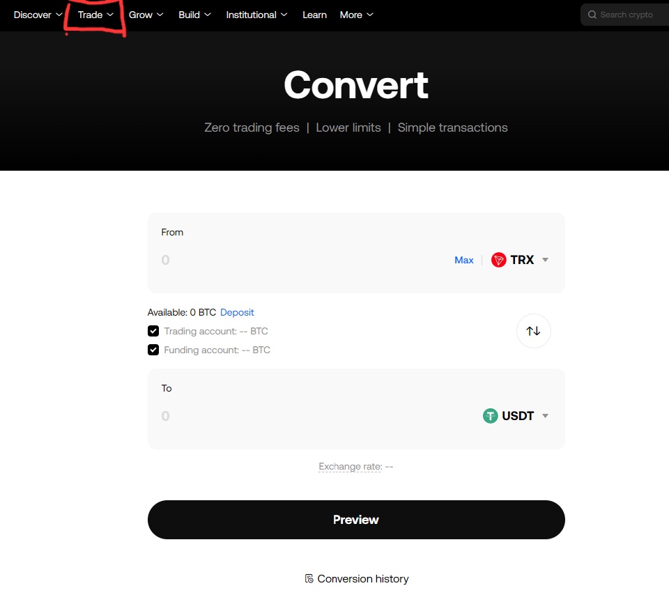 상위 Trade 클릭하시면 Convert 화면이 나옵니다.