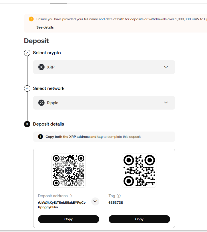 업비트에서 수수료가 저렴한 TRX나 리플을 매수--------겨래 하고자 하는 해외거래소에서 내가 산 코인 입금 계좌 복사