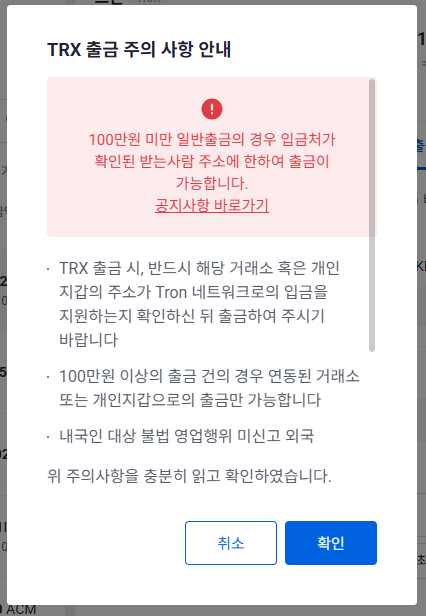 드디어 매수한 TRX(트론)을 해외로 보내야 합니다.