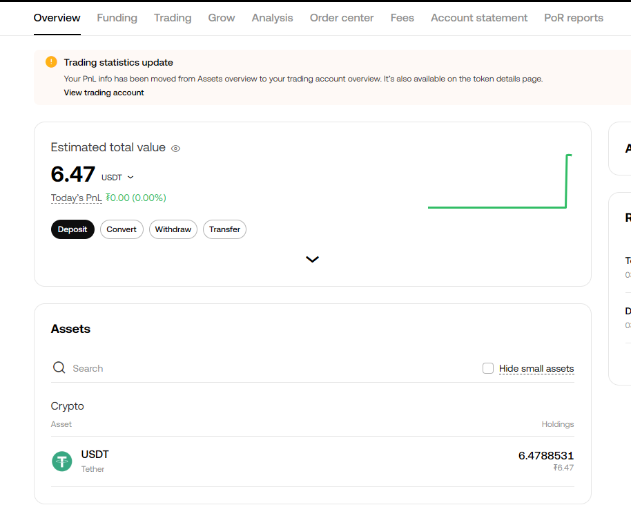 업비트에서 출금 신청 하시고 OKX 거래소 입금이 잘 됐는지 확인합니다 Assets (자산) 클릭