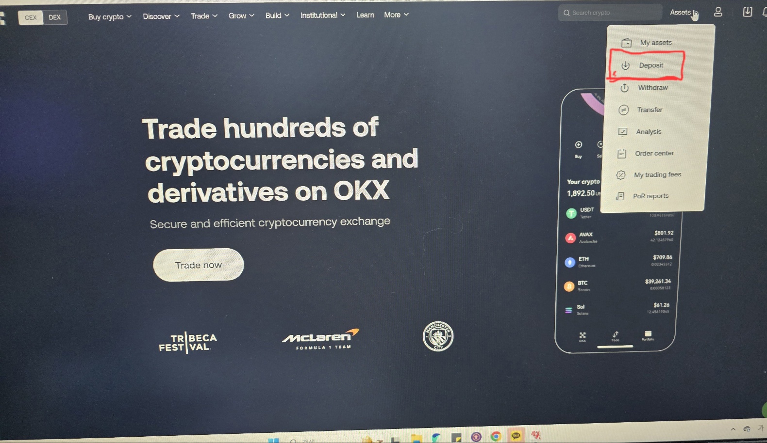 OKX 로그인 클릭-해서 들어가시면 ---상위 우측 Assets를 누르시면