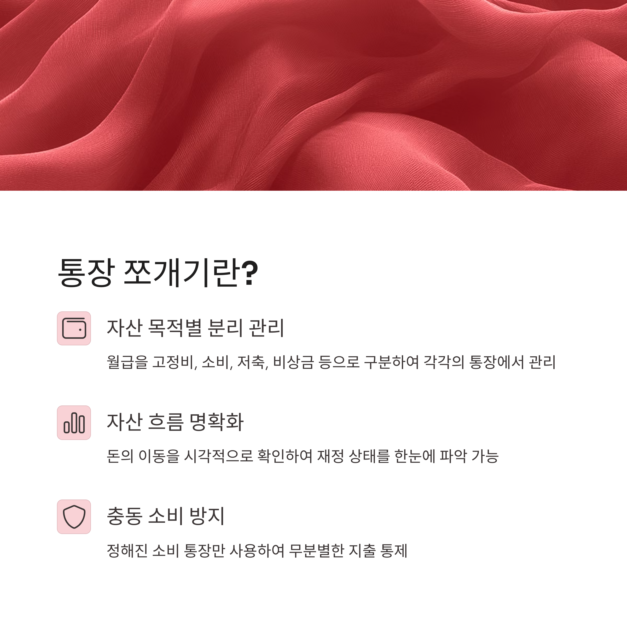 | 통장 쪼개기란? | 목적에 따라 자산을 분리 관리하는 재테크 방법입니다. |