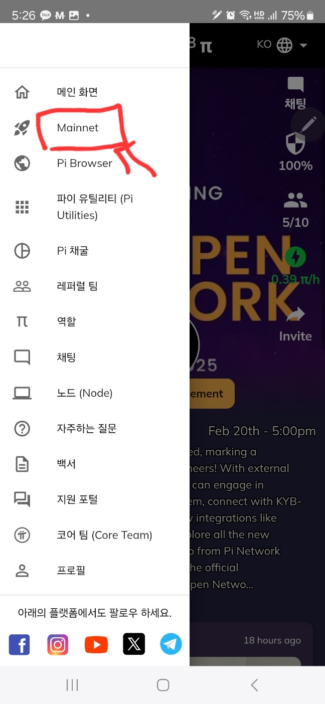 pi메인넷을 한번 누르면 테스넷 파이가 있고 한번 더 누르면 메인넷으로 돌아 올수 있습니다