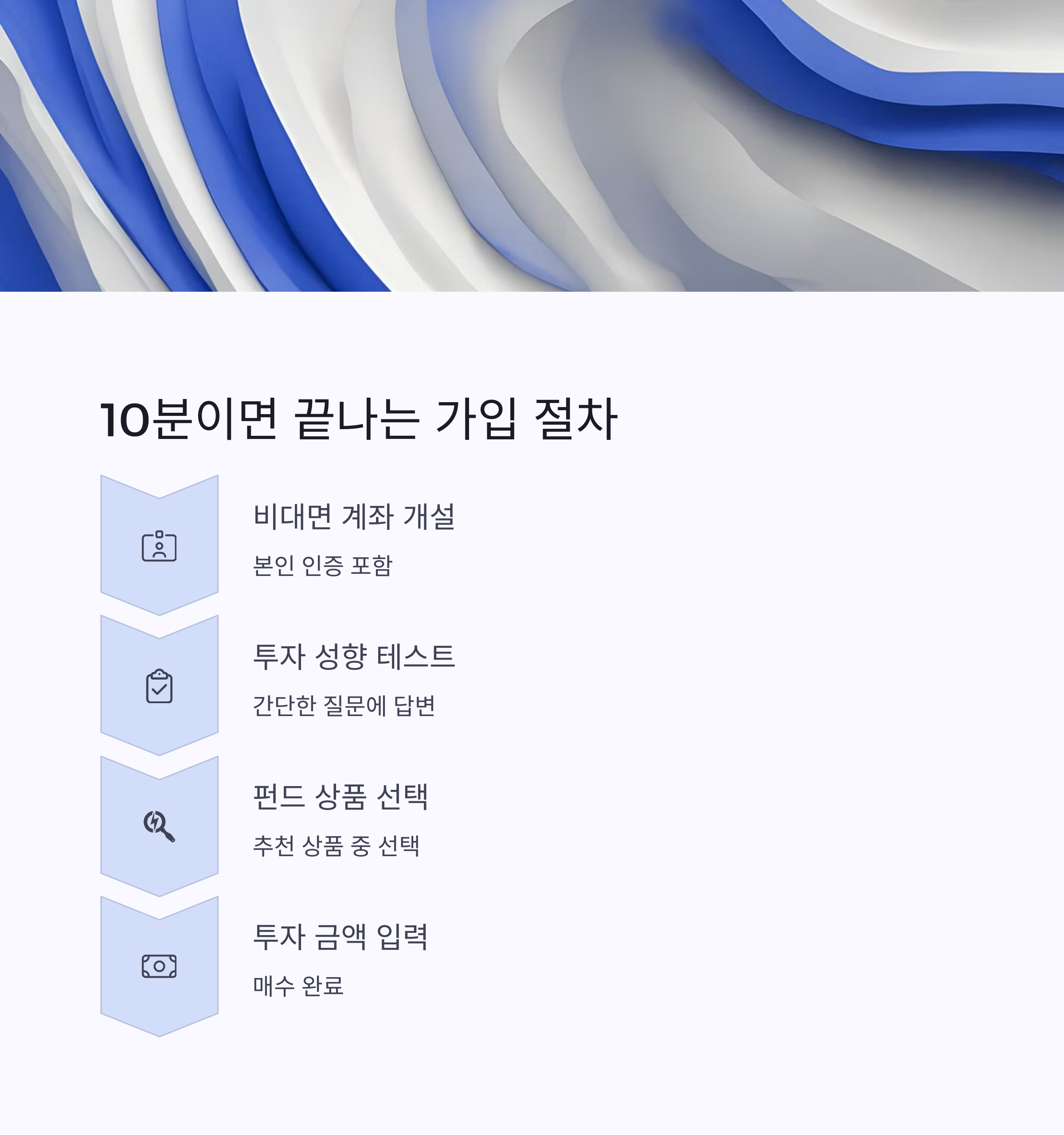아래 표는 비대면 펀드 가입의 기본 절차를 정리한 내용입니다.
