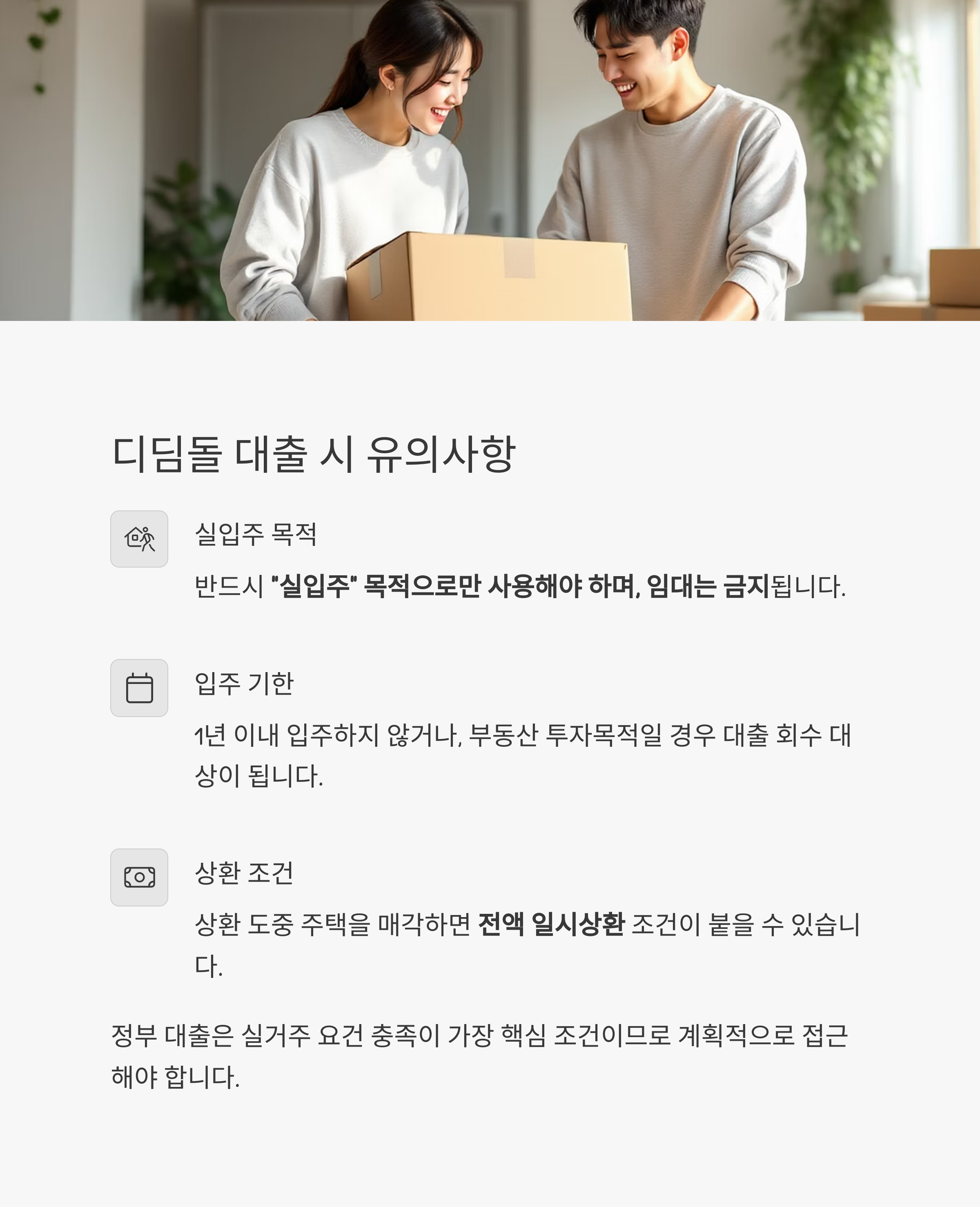 정부 대출은 실거주 요건 충족이 가장 핵심 조건이므로 계획적으로 접근해야 합니다