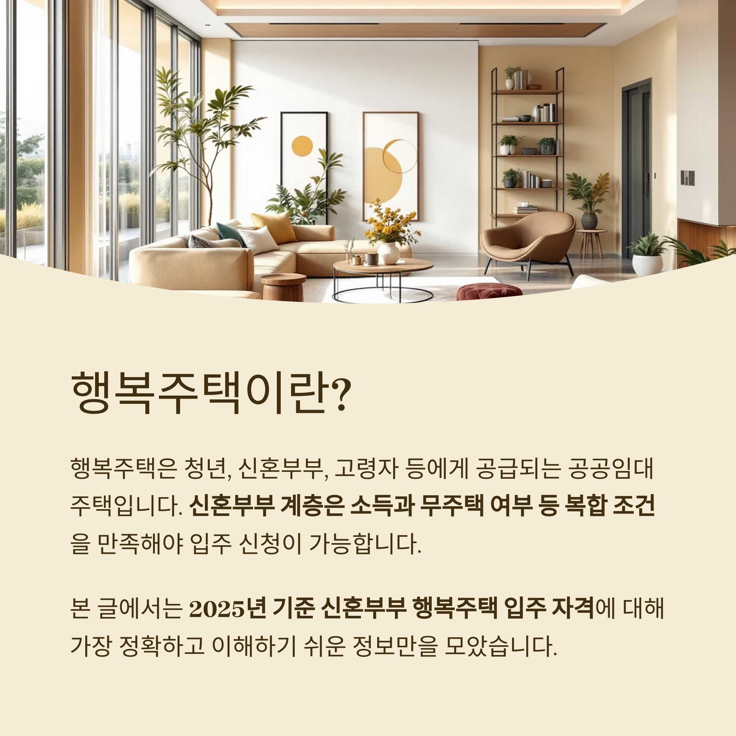 본 글에서는 2025년 기준 신혼부부 행복주택 입주 자격에 대해