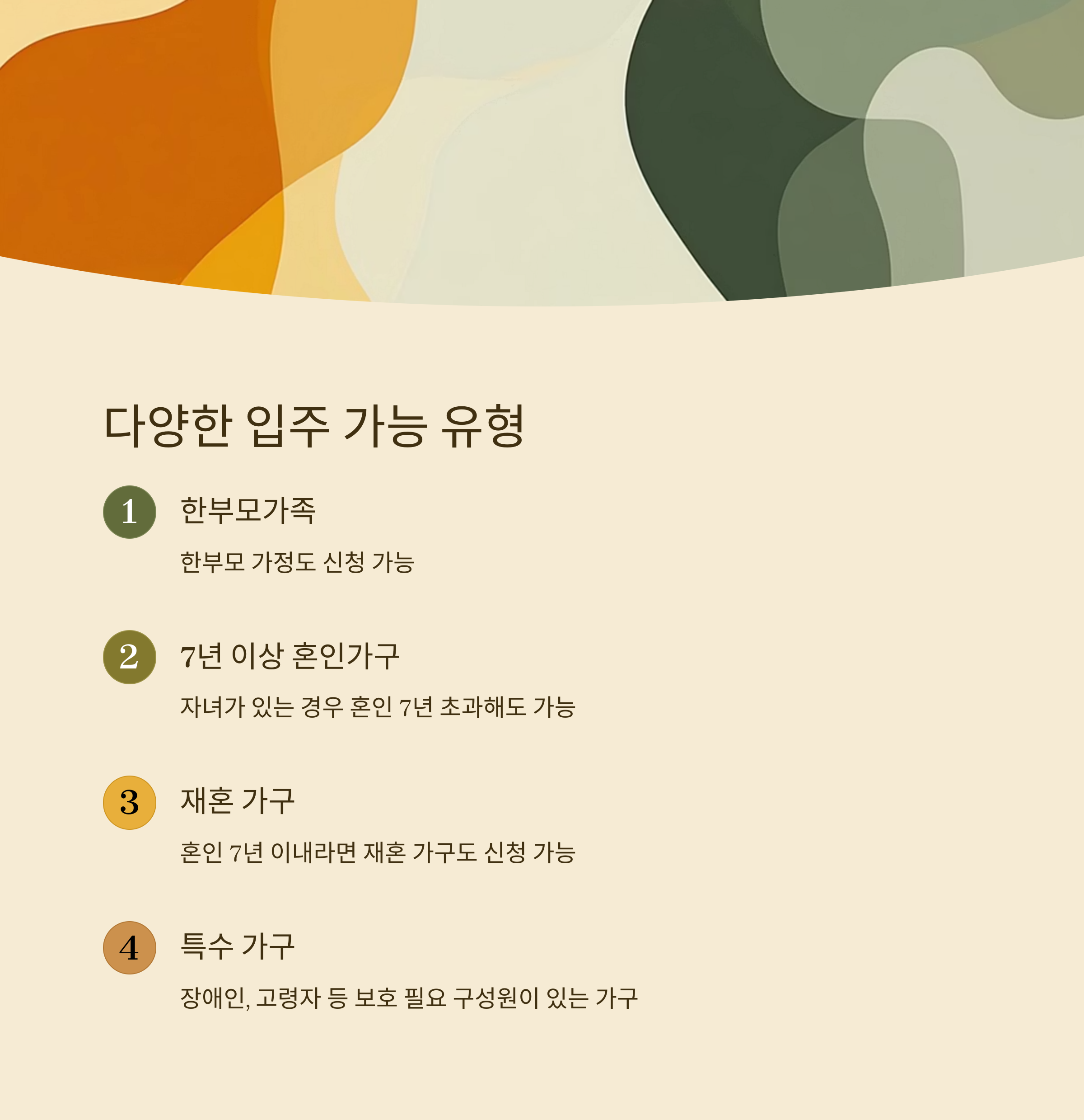 신혼부부 외에도 입주 가능한 유형이 있나요?
