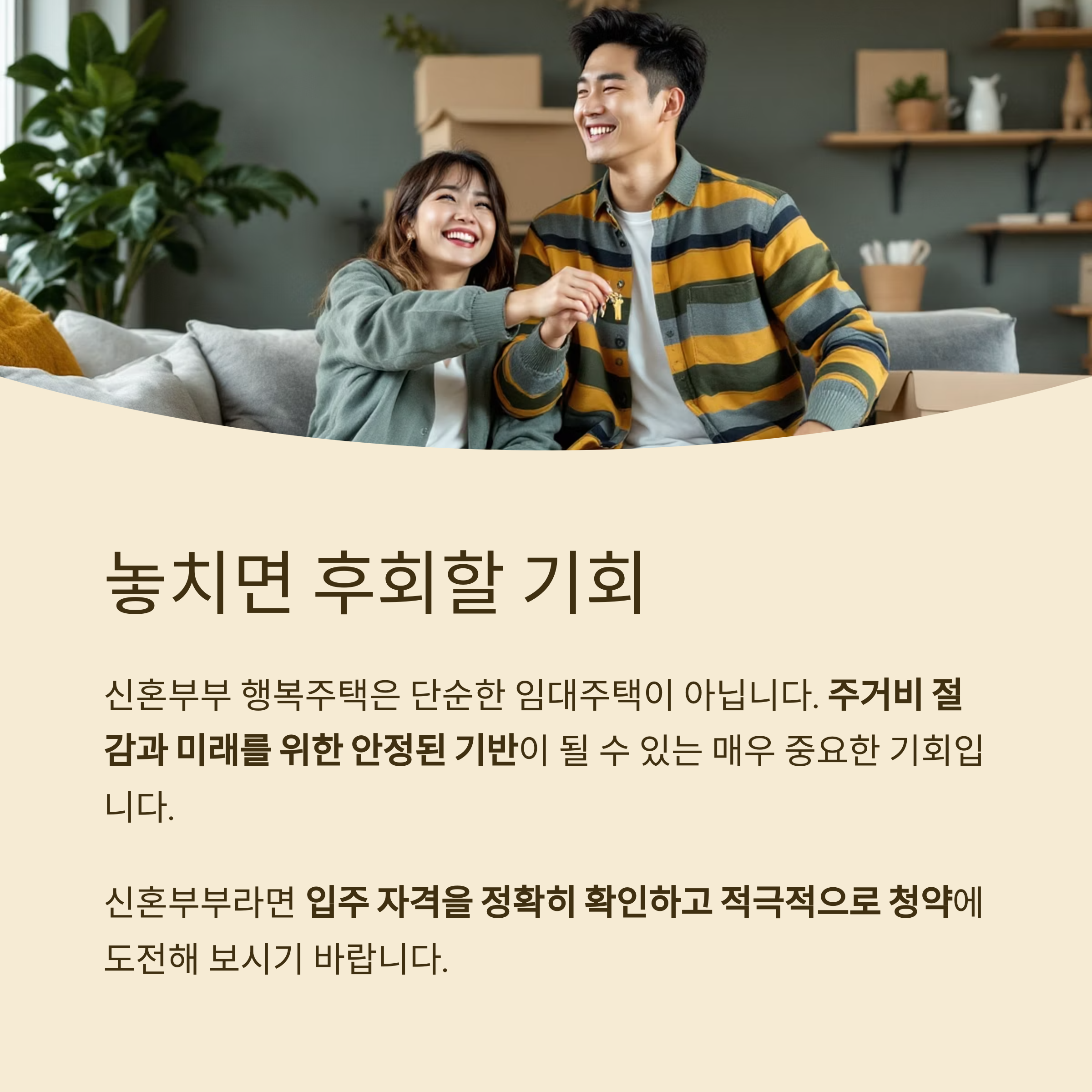 신혼부부라면 입주 자격을 정확히 확인하고 적극적으로 청약에 도전해 보시기 바랍니다