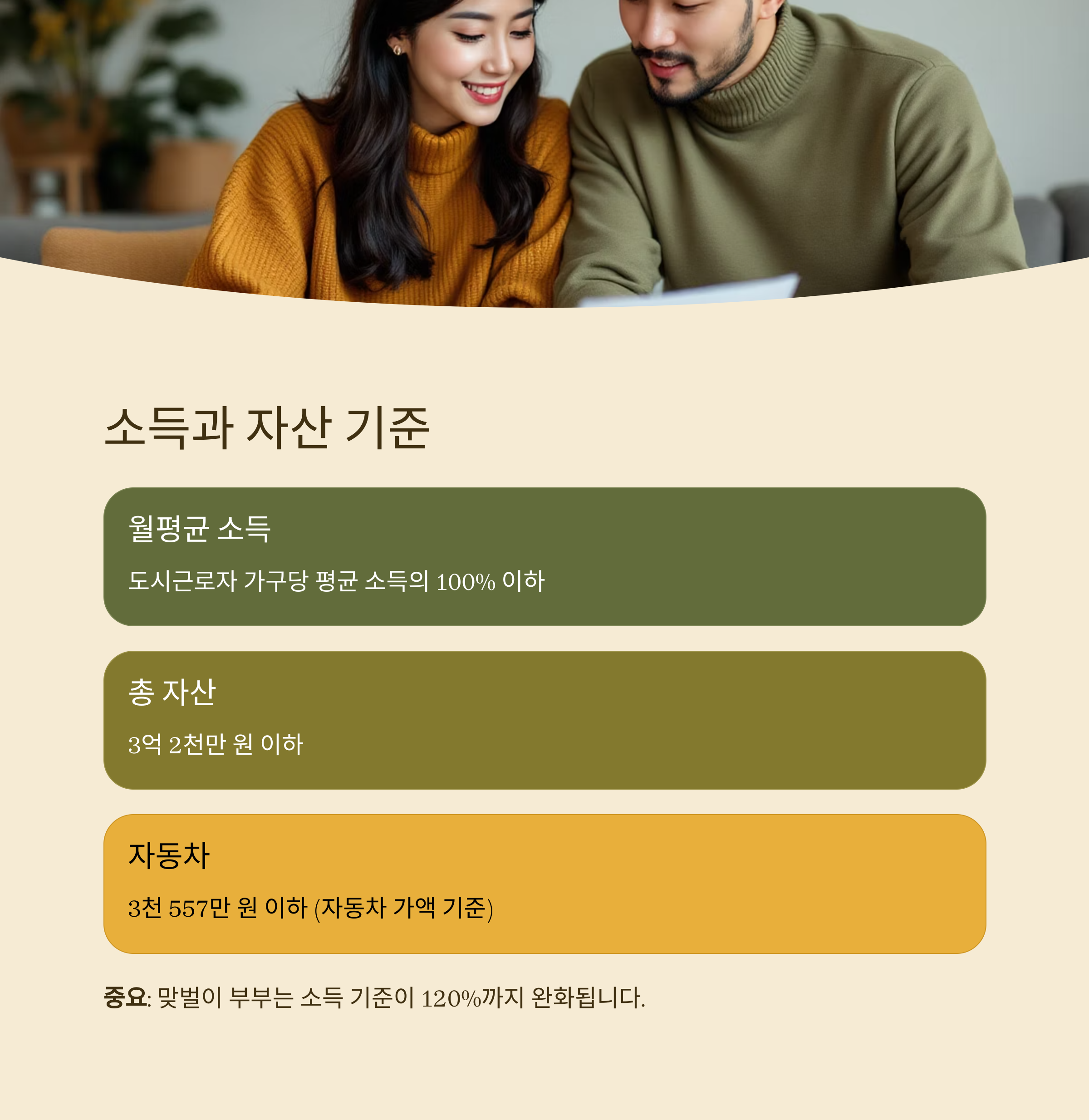 중요: 맞벌이 부부는 소득 기준이 120%까지 완화됩니다
