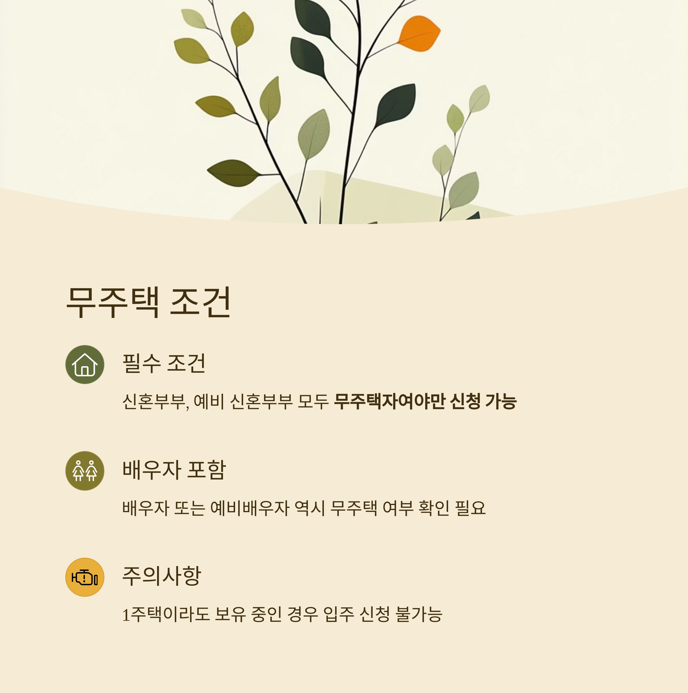 신혼부부, 예비 신혼부부 모두 무주택자여야만 신청 가능합니다