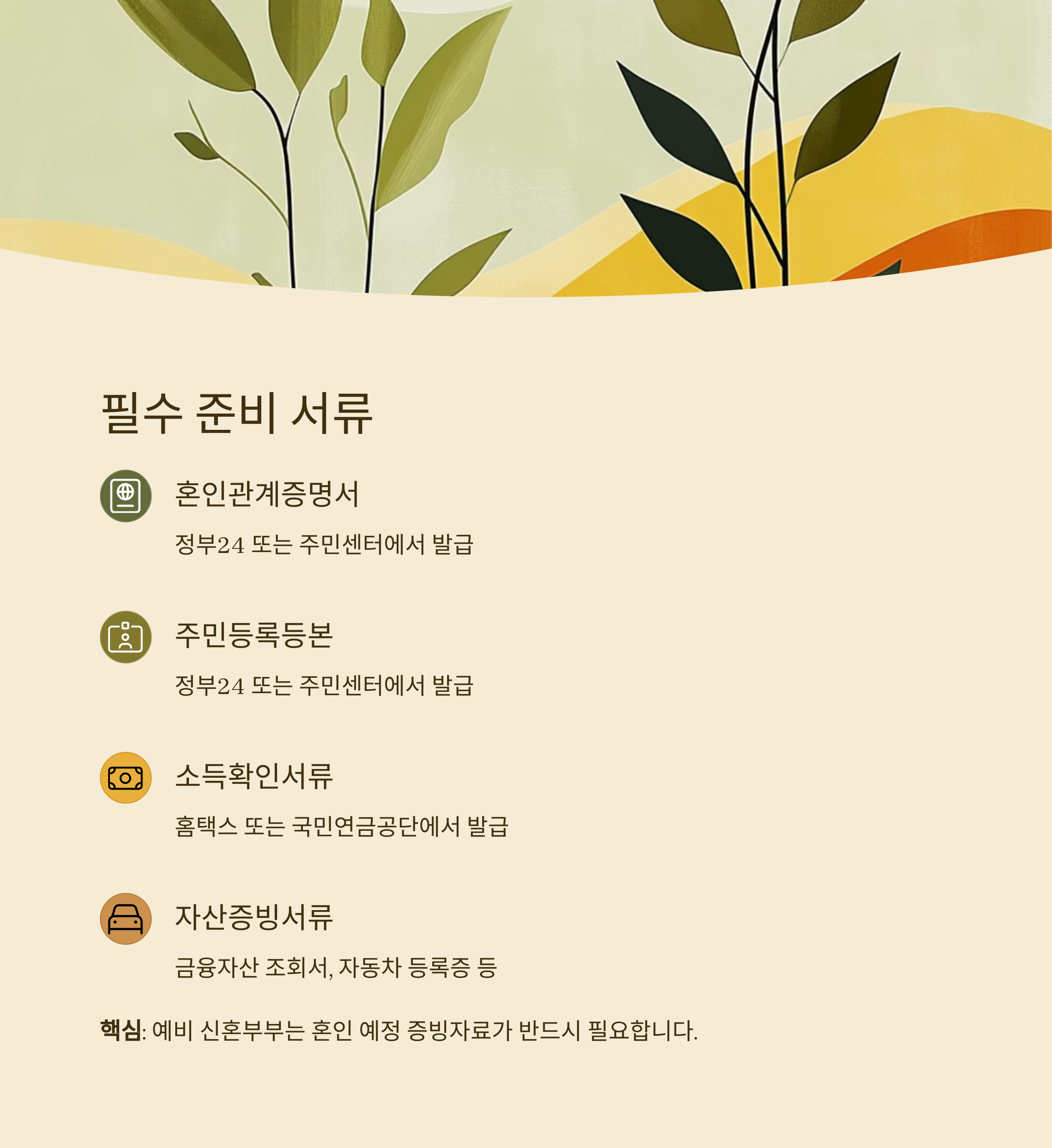 핵심: 예비 신혼부부는 혼인 예정 증빙자료(청첩장, 혼인계약서 등)가 반드시 필요합니다