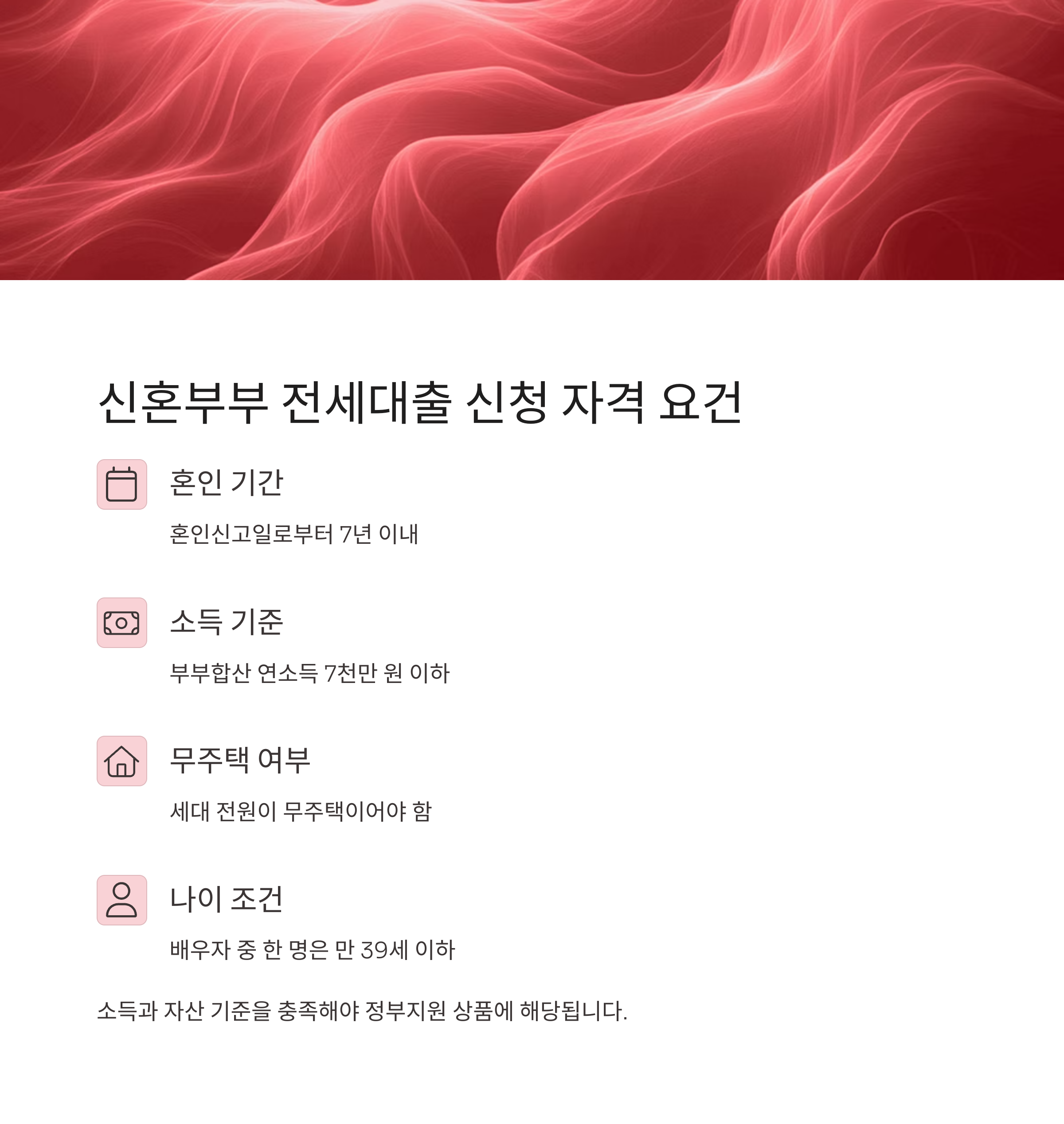 2025년 기준, 신혼부부 전세대출을 받기 위한 조건은 다음과 같습니다.