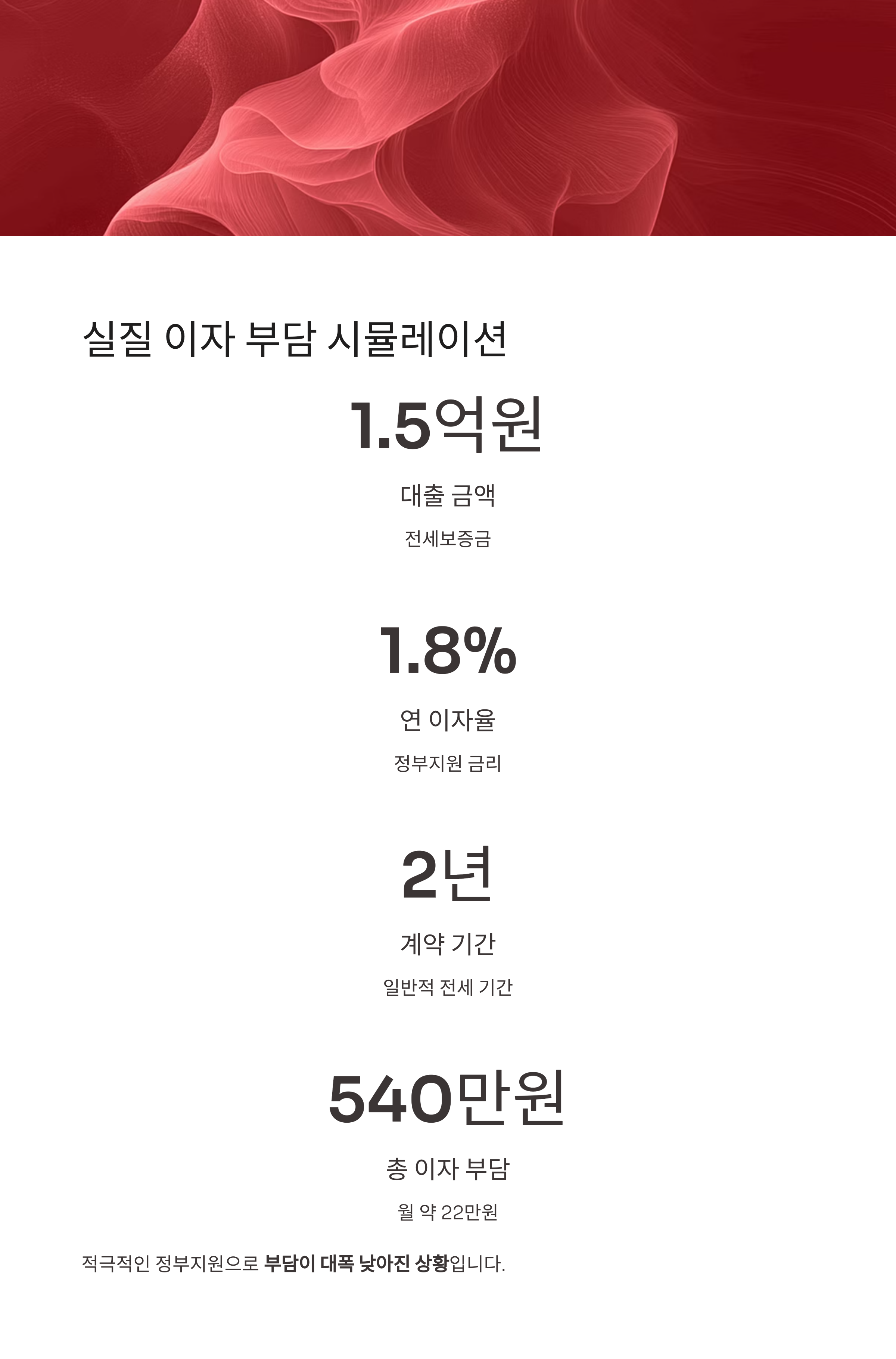금리 1.8%로 2년 계약 시 이자 부담을 계산해 보면 다음과 같습니다.