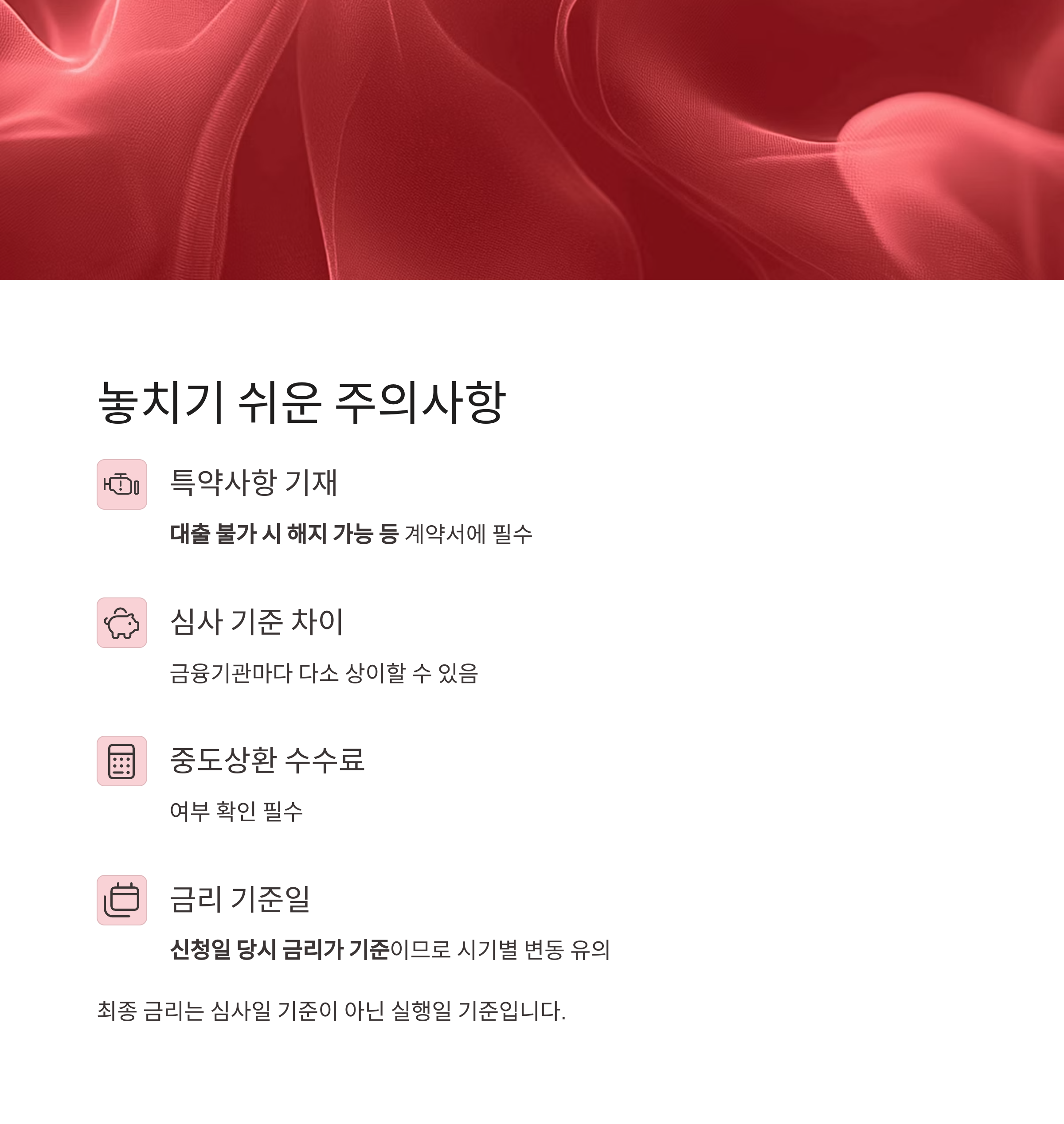 • 중도상환 수수료 여부도 꼭 확인해야 함