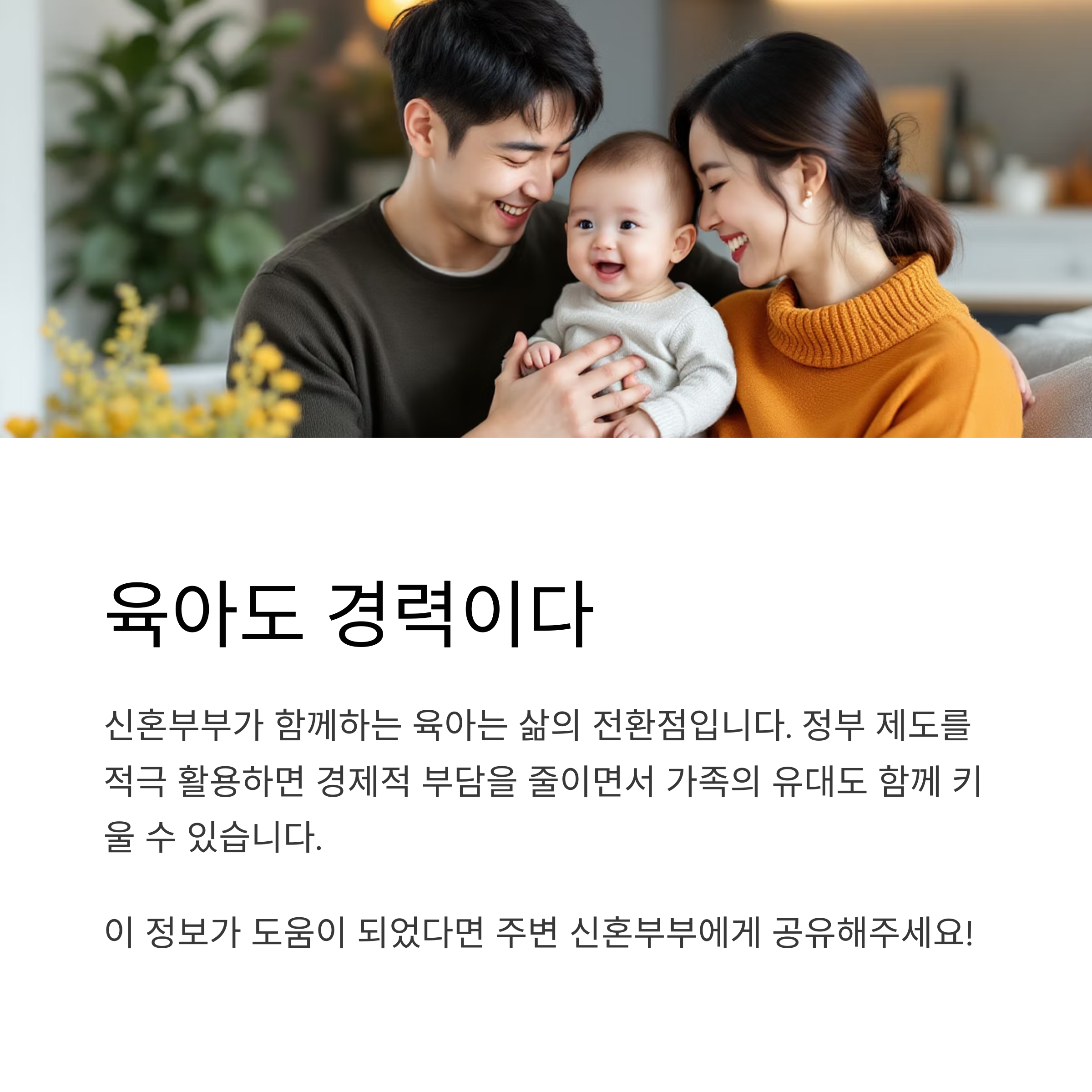 신혼부부가 처음 맞이하는 육아는 설렘과 동시에 현실적인 고민도 함께합니다.