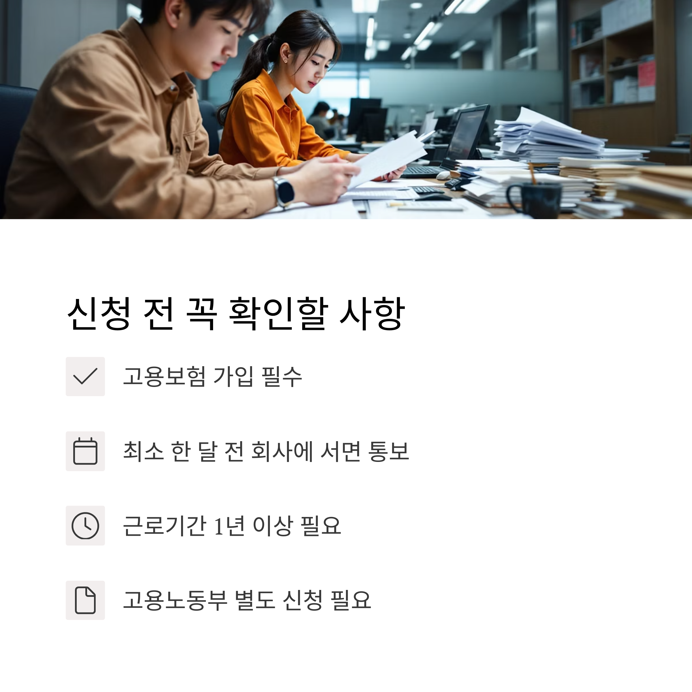 | 근로기간 1년 이상 | 보통 필수 조건 |