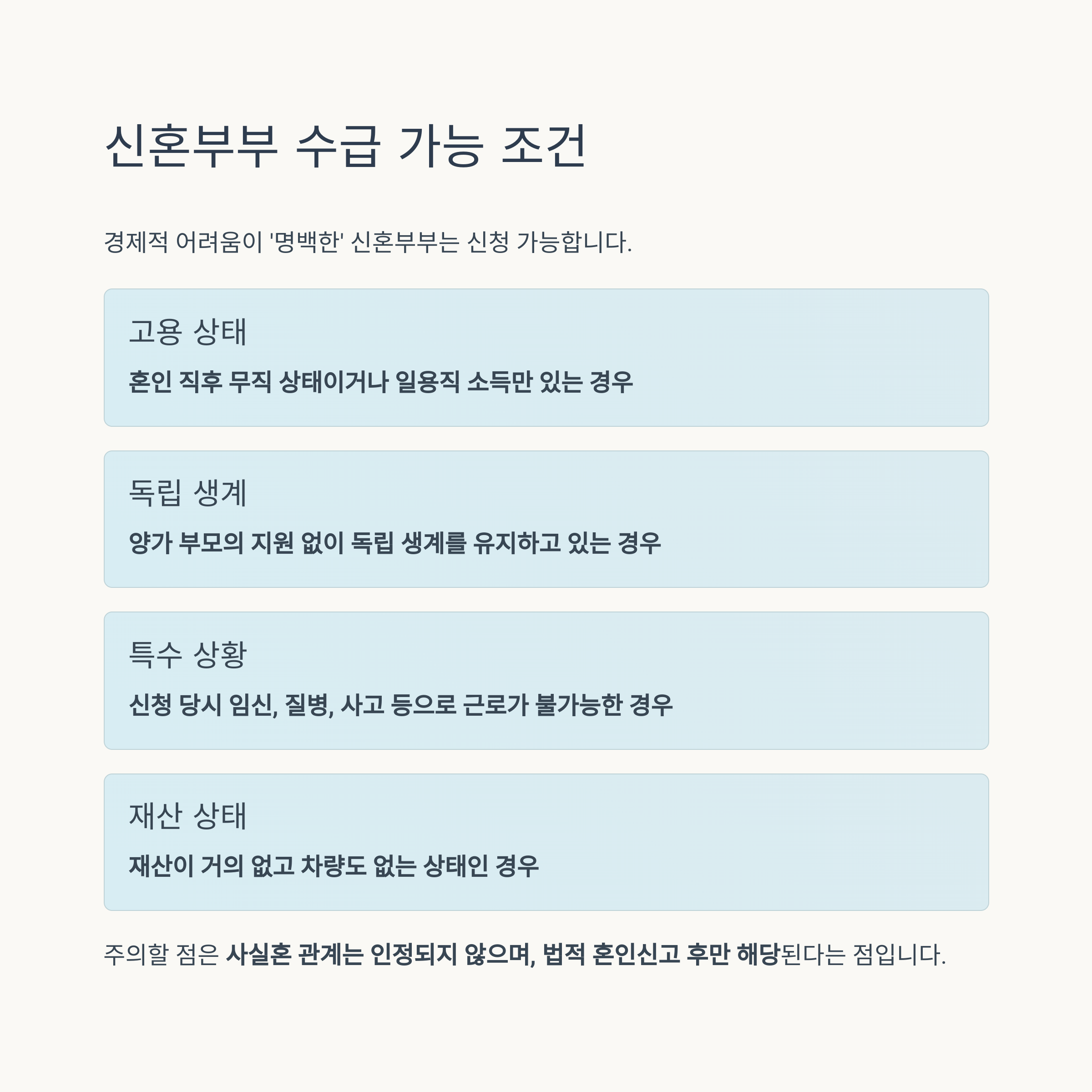 어떤 조건에서 신혼부부가 수급이 가능한가?