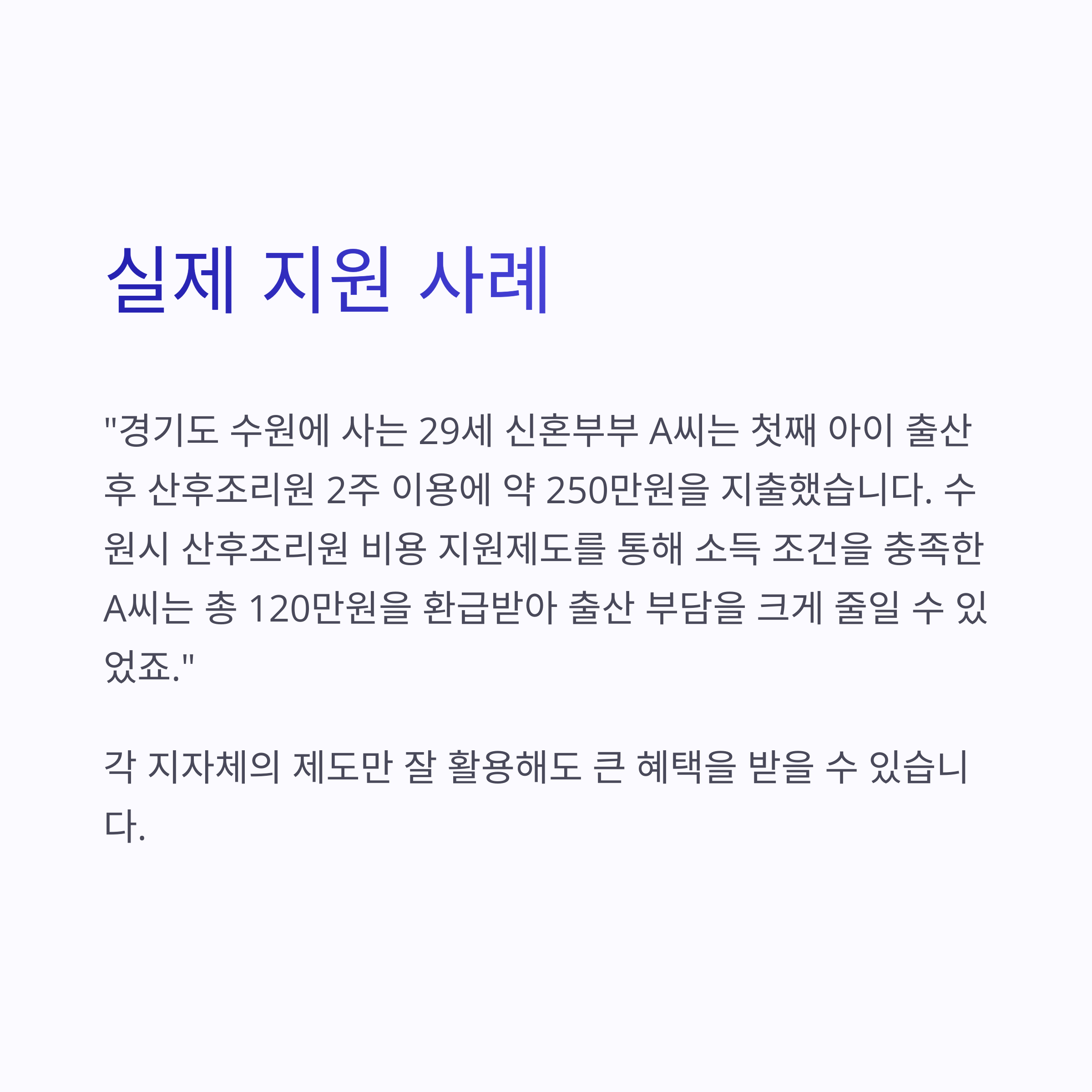 수원시 산후조리원 비용 지원제도를 통해 소득 조건을 충족한 A씨는