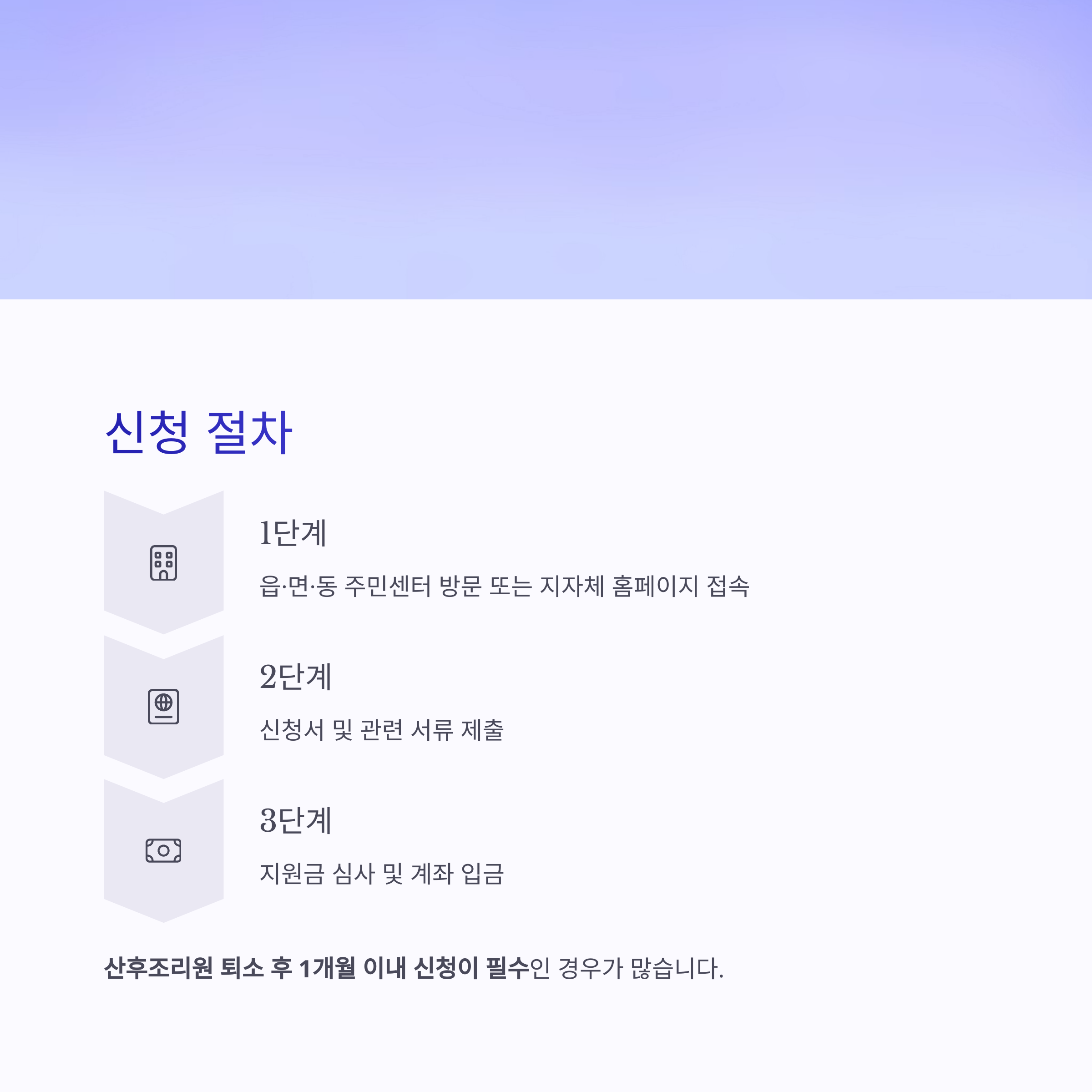 "산후조리원 퇴소 후 1개월 이내 신청이 필수"인 경우도 많으니, 미리 준비해야 합니다.