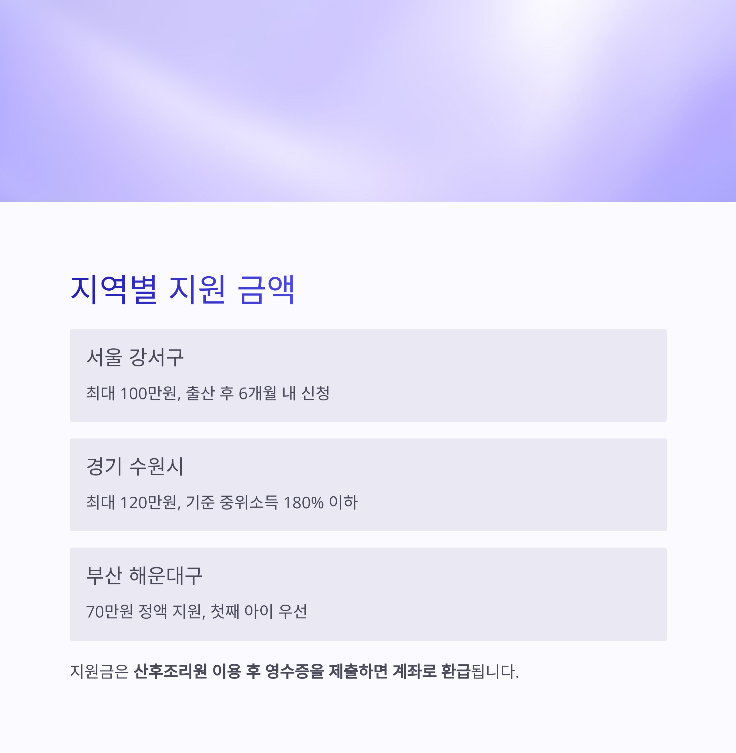 | 서울 강서구 | 최대 100만원 | 출산 후 6개월 내 신청 |
