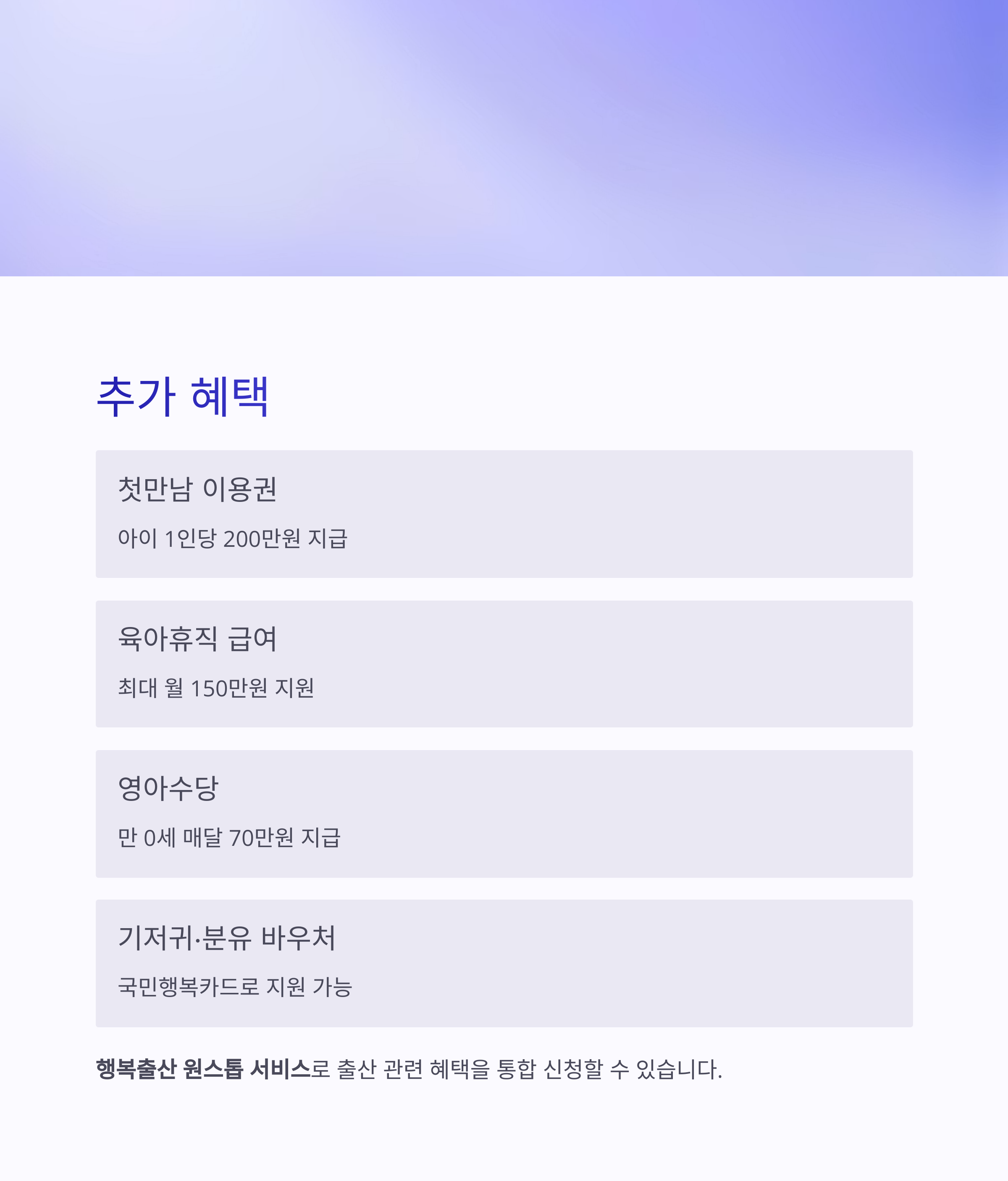 | 기저귀·분유 바우처 | 국민행복카드로 지원 가능 |