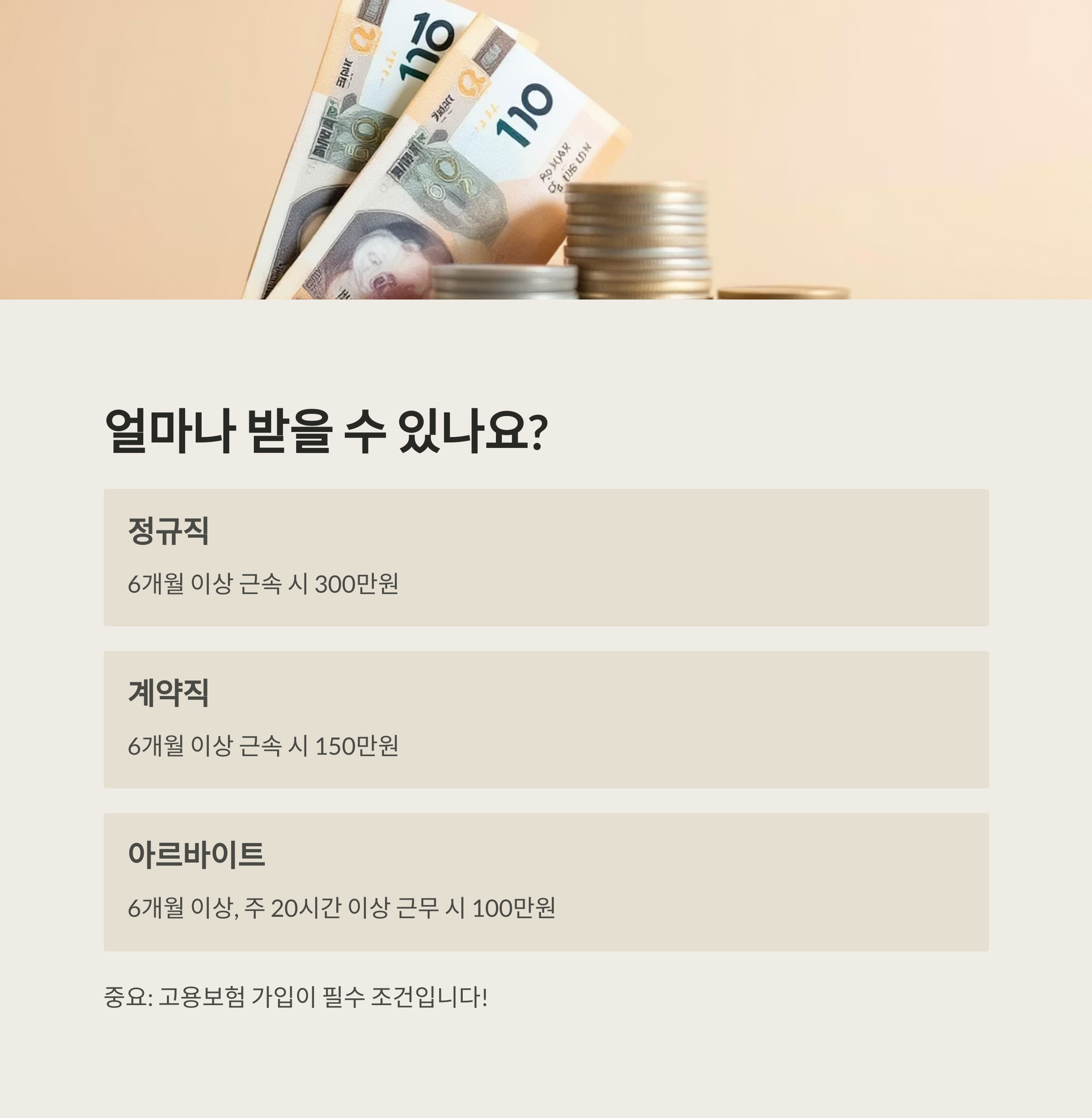 중요: 고용보험 가입 여부가 필수 조건에 포함되므로 꼭 확인해야 합니다