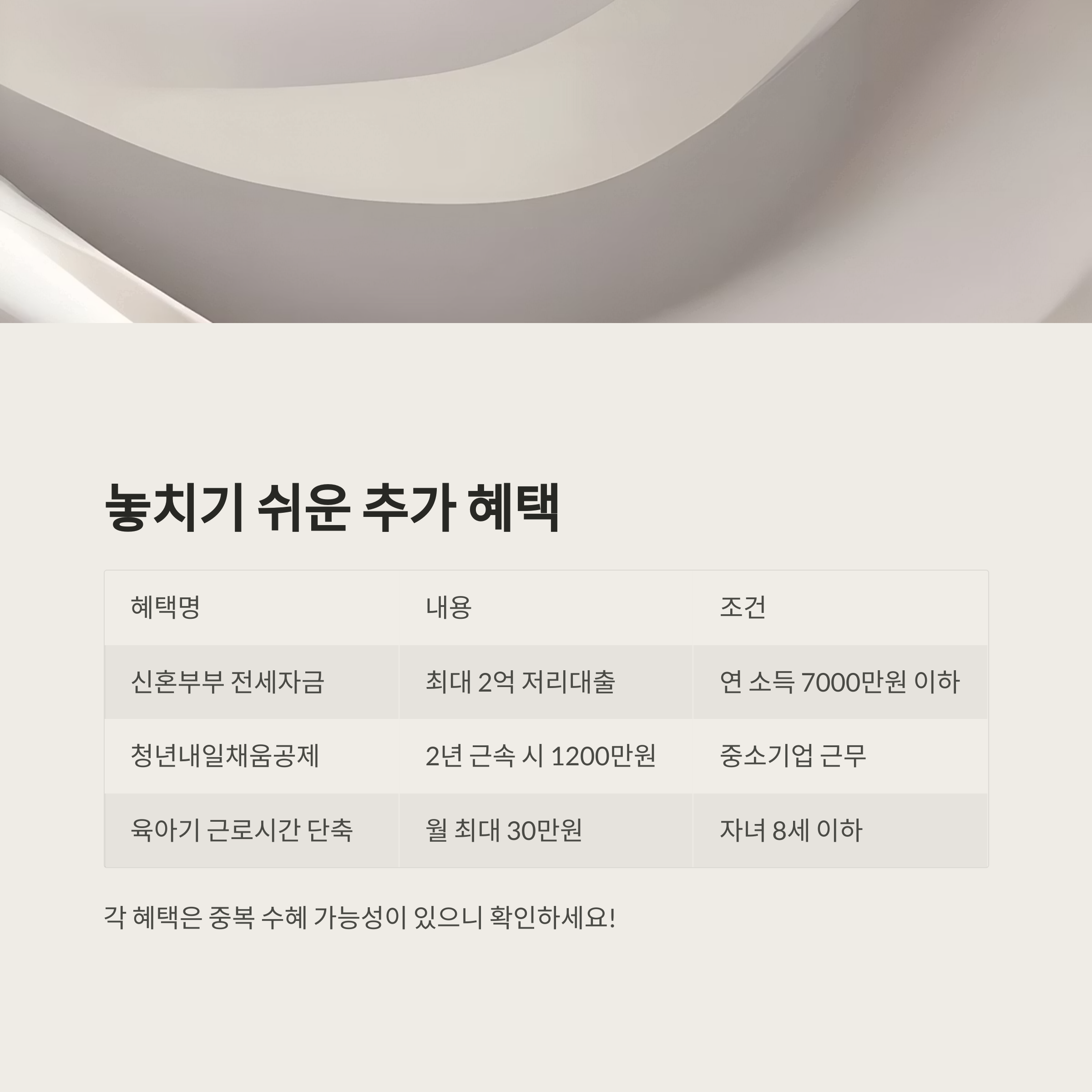 각 혜택은 중복 수혜 가능성이 있으므로 반드시 확인 필요