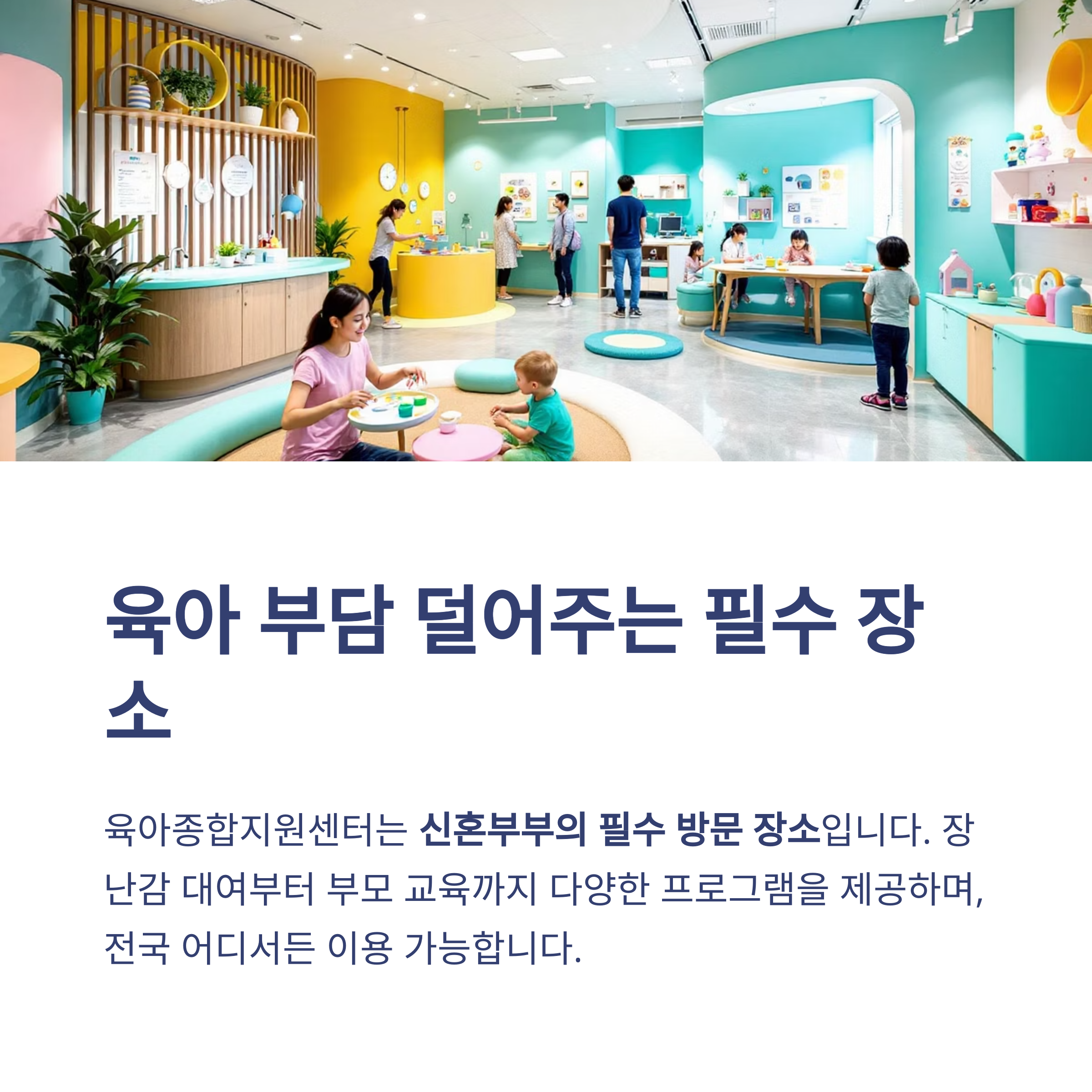 육아에 대한 부담을 덜고 싶은 신혼부부들에게 육아종합지원센터는 필수 방문 장소입니다.