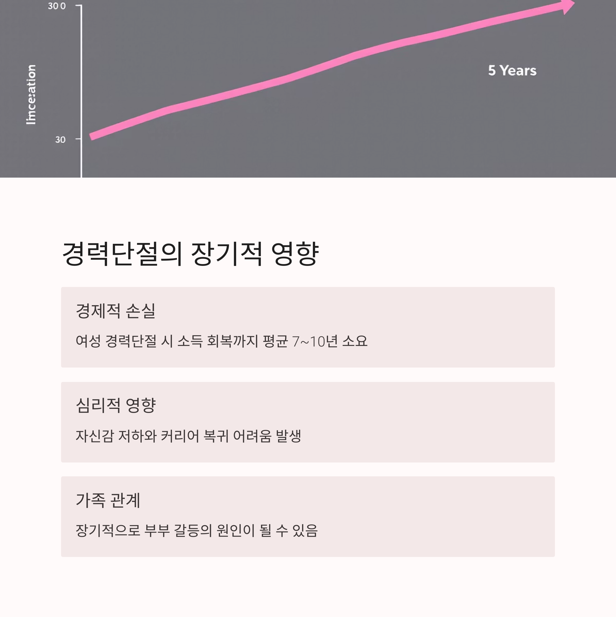 특히 경력이 단절된 여성은 평균 소득 회복까지 7~10년 이상 걸리는 경우가 많아