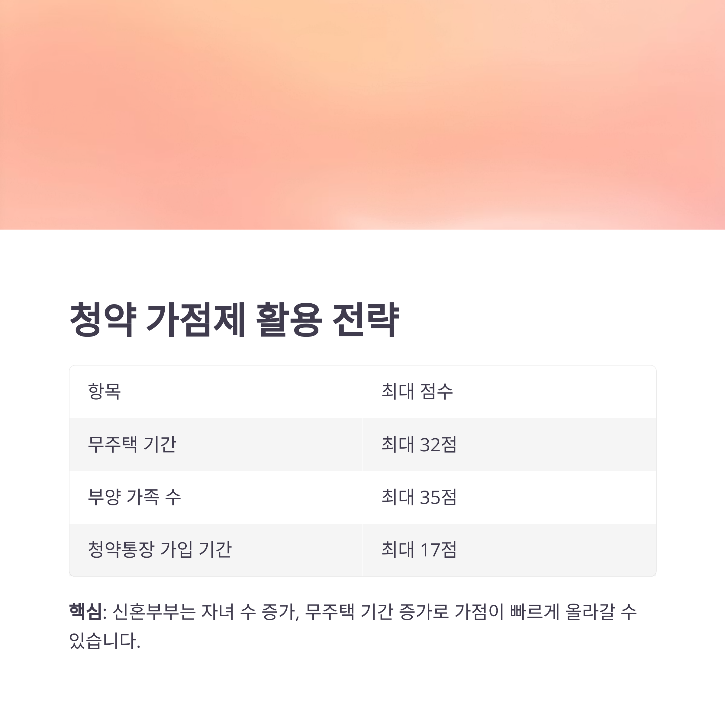핵심: 신혼부부일수록 자녀 수 증가, 무주택 기간 증가로 가점이 빠르게 올라갈 수 있어