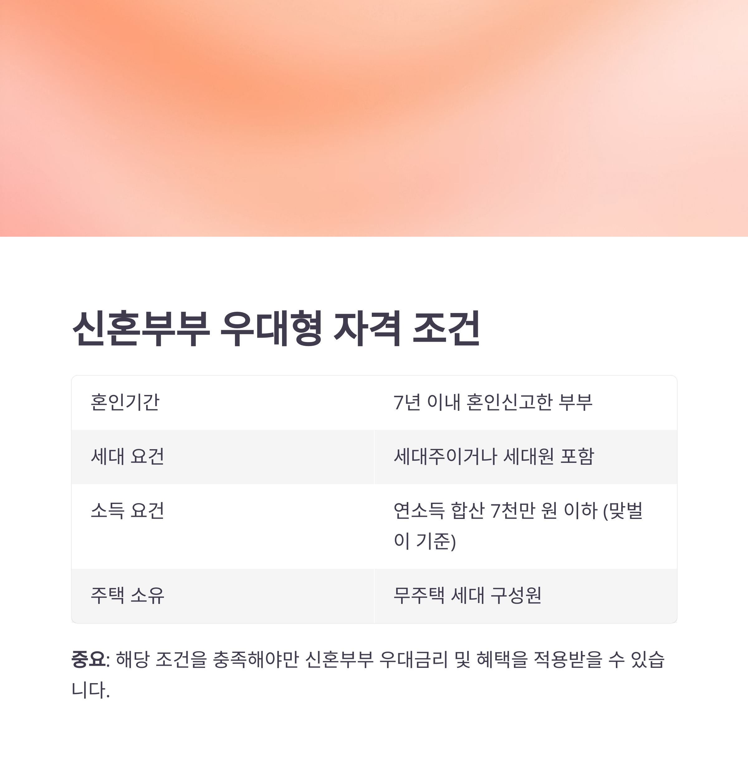 중요: 해당 조건을 충족해야만 신혼부부 우대금리 및 혜택을 적용받을 수 있습니다.