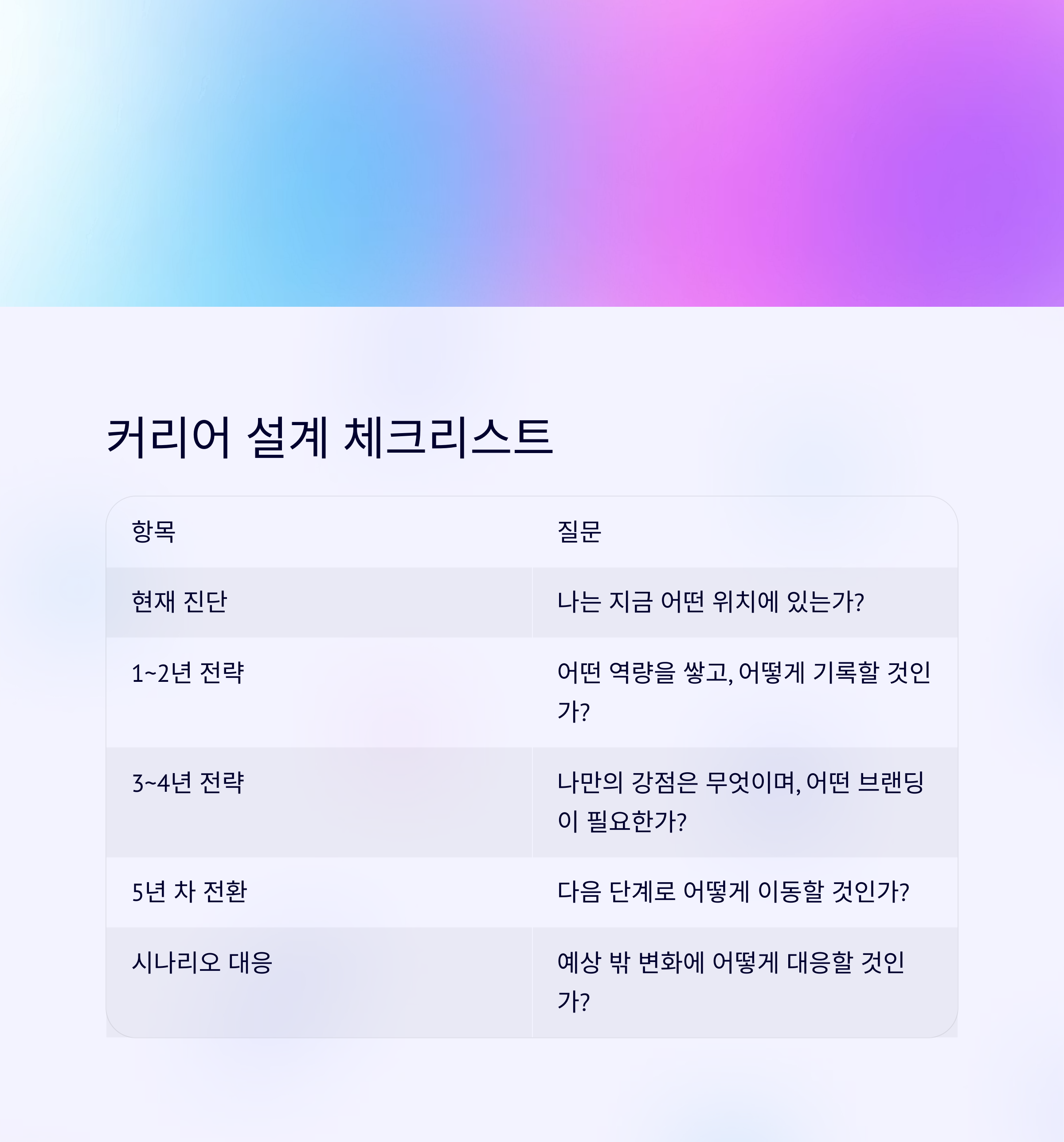 커리어 설계 체크리스트 요약