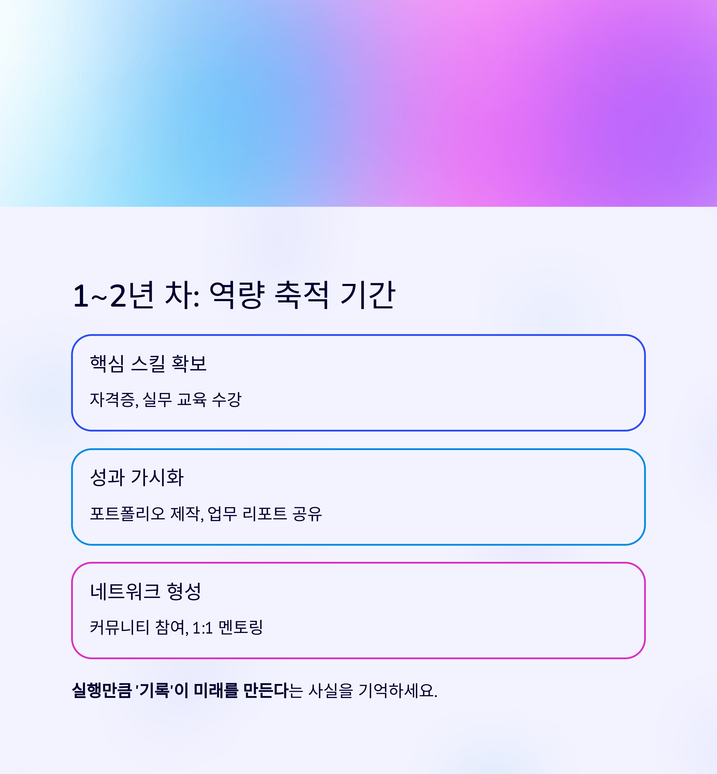 | 1~2년 전략 | 어떤 역량을 쌓고, 어떻게 기록할 것인가? |