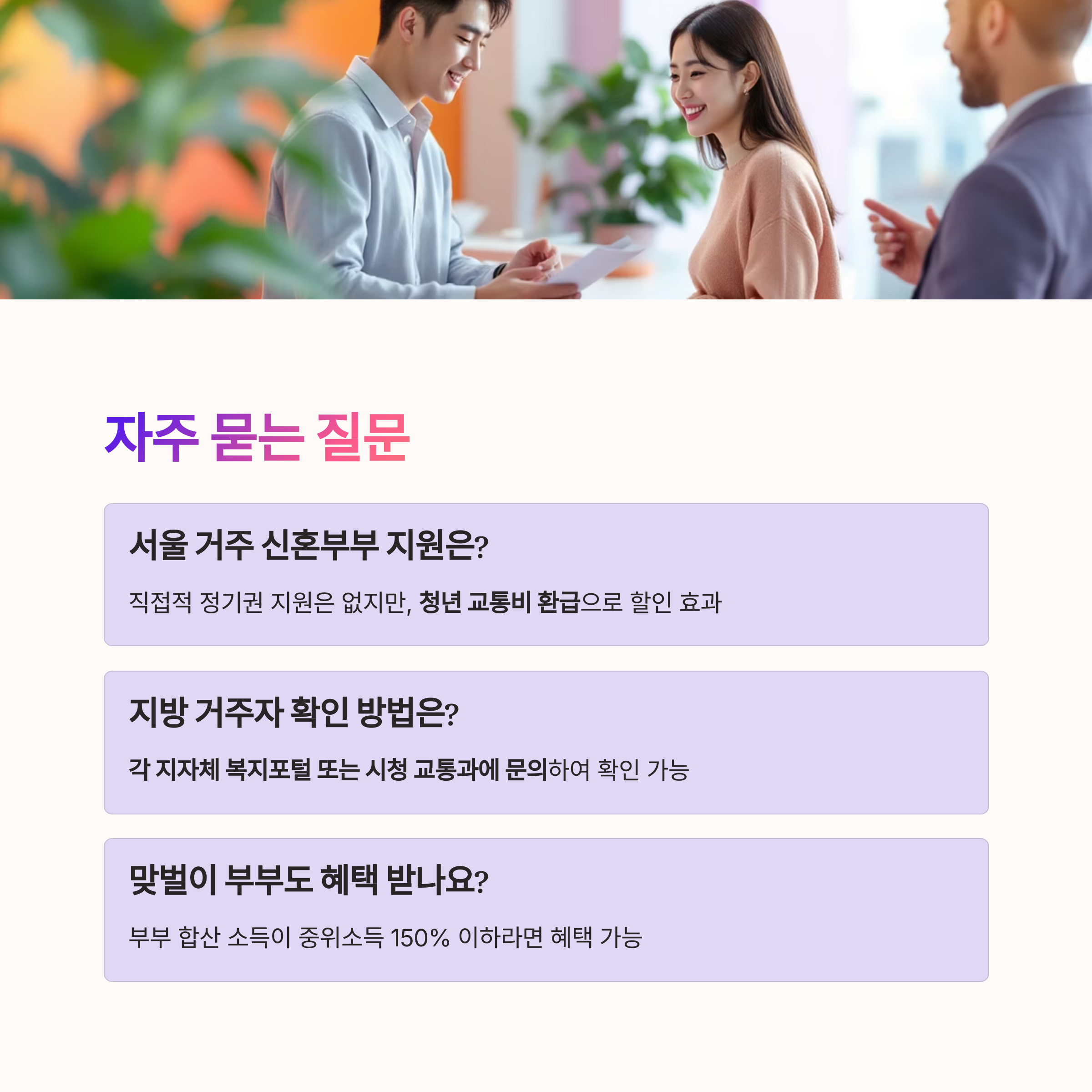 "서울에 거주하는데 신혼부부 정기권 지원 없나요?"
