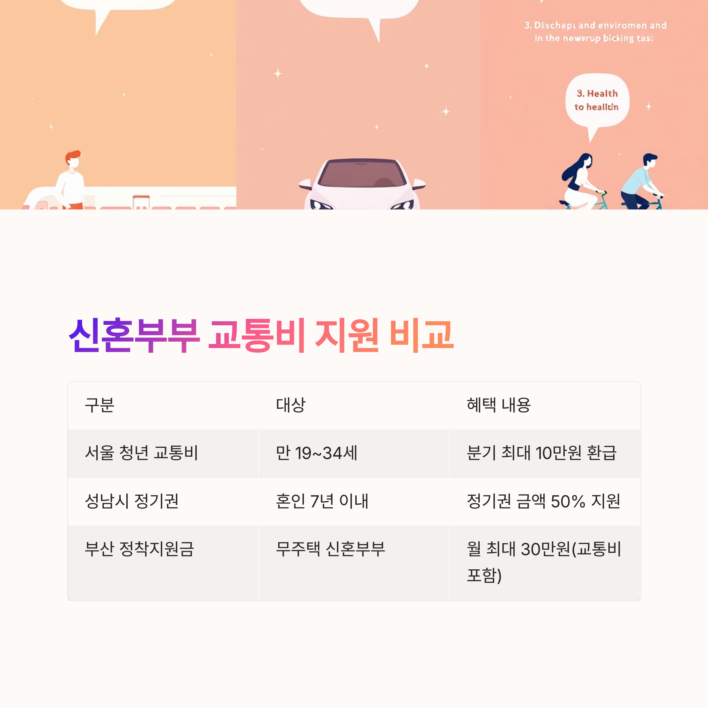 알아두면 좋은 신혼부부 교통비 지원 비교표